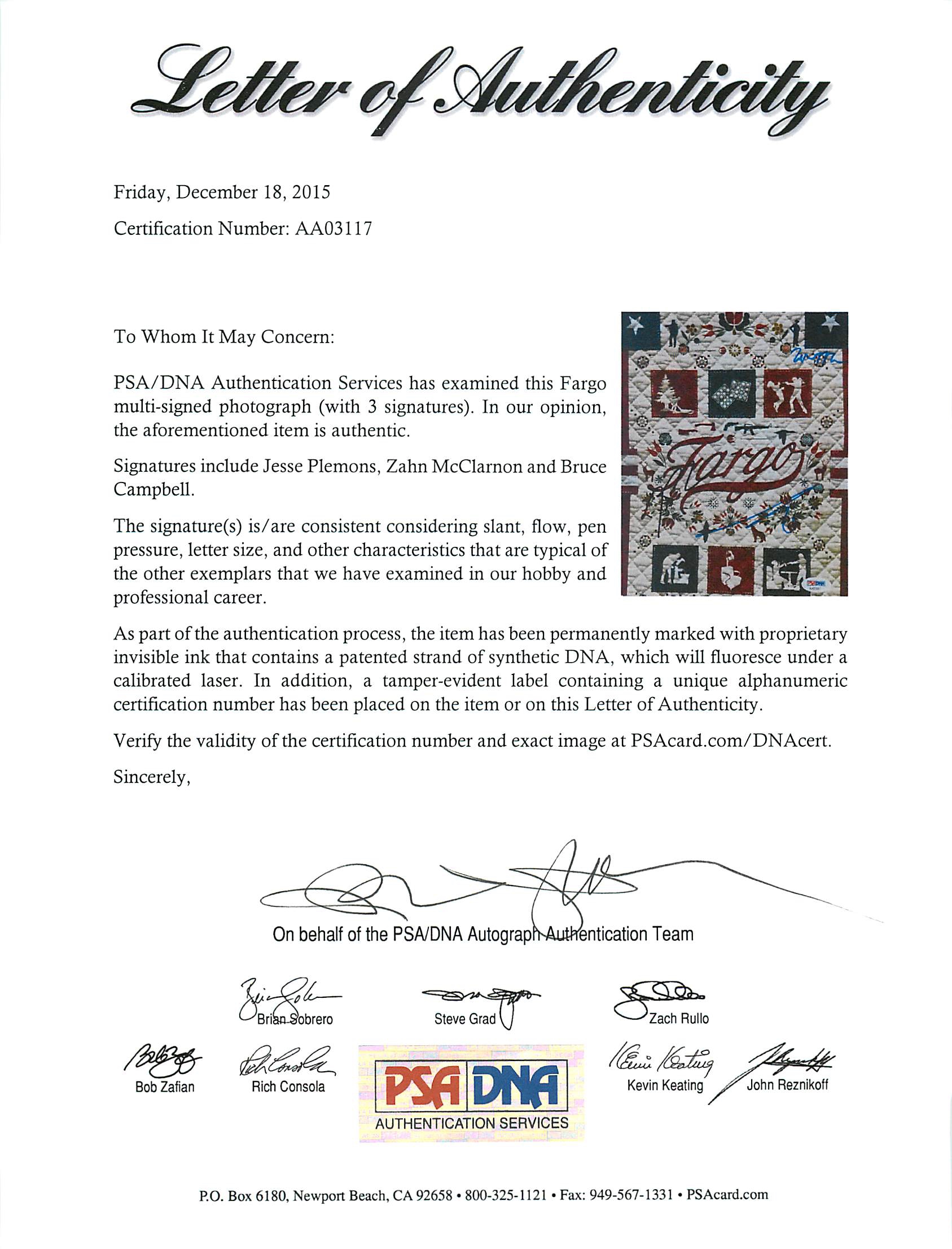This is a Authentic Signed 8X10 Photo that has been Personally Signed & Autographed by Fargo. This item is 100% Authentic to include a Certificate of Authenticity (COA) / hologram by PSA/DNA #AA03117.Press Pass Collectibles offers a 100% Lifetime Guarantee on all Autographed & Signed Fargo memorabilia.