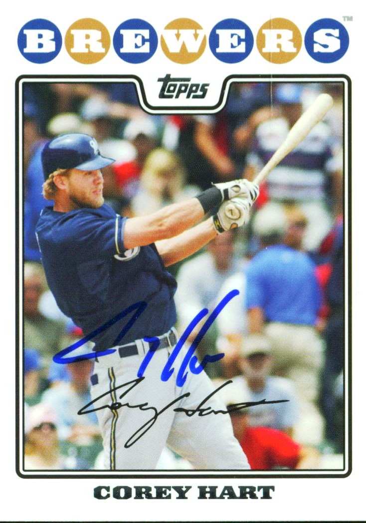 This is a 2008 Topps #42 Authentic Signed Card that has been Personally Signed & Autographed by Corey Hart of the Milwaukee Brewers. This item is 100% Authentic to include a Certificate of Authenticity (COA) by Press Pass Collectibles.Press Pass Collectibles offers a 100% Lifetime Guarantee on all Autographed & Signed Milwaukee Brewers Corey Hart memorabilia.