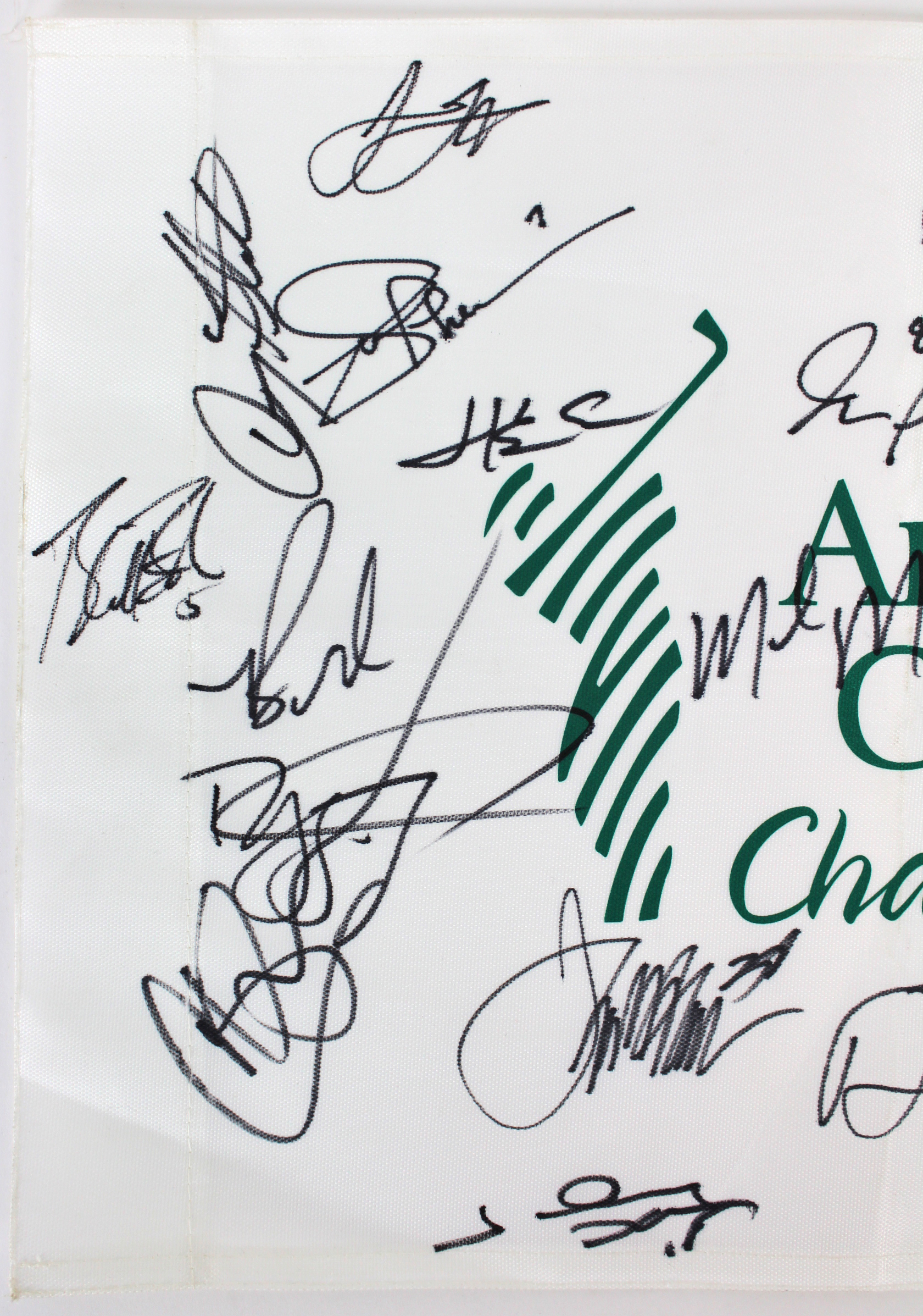 This Autographed American Century Championship Pin Flag has been Personally Signed by Jared Goff, Doug Flutie, Joe Theismann, Herm Edwards, Blake Bortles, Bode Miller, Chris Webber, Johnny Damon, Terrell Davis, Adam Thielen, T.J. Oshie, A.J. Hawk, Larry The Cable Guy, Marcus Allen, Golden Tate, DeMarcus Ware, Patrick Peterson, Steve Young, Ray Romano, Miles Teller, Tim Brown, Joe Pavelski, Mike Modano & Jim McMahon. This item is 100% Authentic to include a Certificate of Authenticity (COA) / hologram by Beckett Authentication Services. The authenticity can be verified on Beckett Authentication Services website. Press Pass Collectibles only offers Authentic Autographs by Jared Goff, Doug Flutie, Joe Theismann, Herm Edwards, Blake Bortles, Bode Miller, Chris Webber, Johnny Damon, Terrell Davis, Adam Thielen, T.J. Oshie, A.J. Hawk, Larry The Cable Guy, Marcus Allen, Golden Tate, DeMarcus Ware, Patrick Peterson, Steve Young, Ray Romano, Miles Teller, Tim Brown, Joe Pavelski, Mike Modano & Jim McMahon through Signings, In-Person Signings or Private Collections to include a 100% money back Lifetime Authenticity Guarantee.