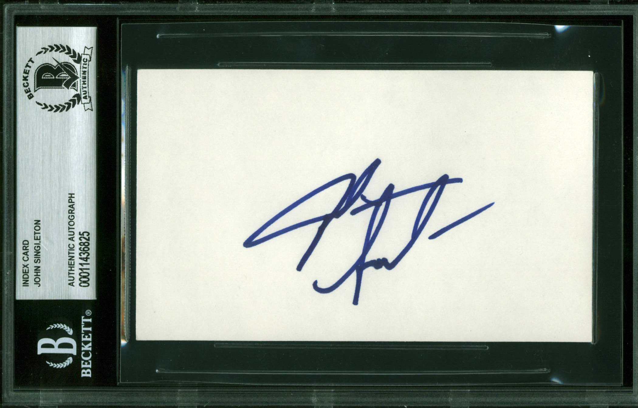 This Autographed 3x5 Index Card has been Personally Signed by John Singleton of Boyz N The Hood. This item is 100% Authentic, it comes slabbed and authenticated by Beckett Authentication Services.The authenticity can be verified on Beckett Authentication Services website. Press Pass Collectibles only offers Authentic Autographs by John Singleton through Signings, In-Person Signings or Private Collections to include a 100% money back Lifetime Authenticity Guarantee.