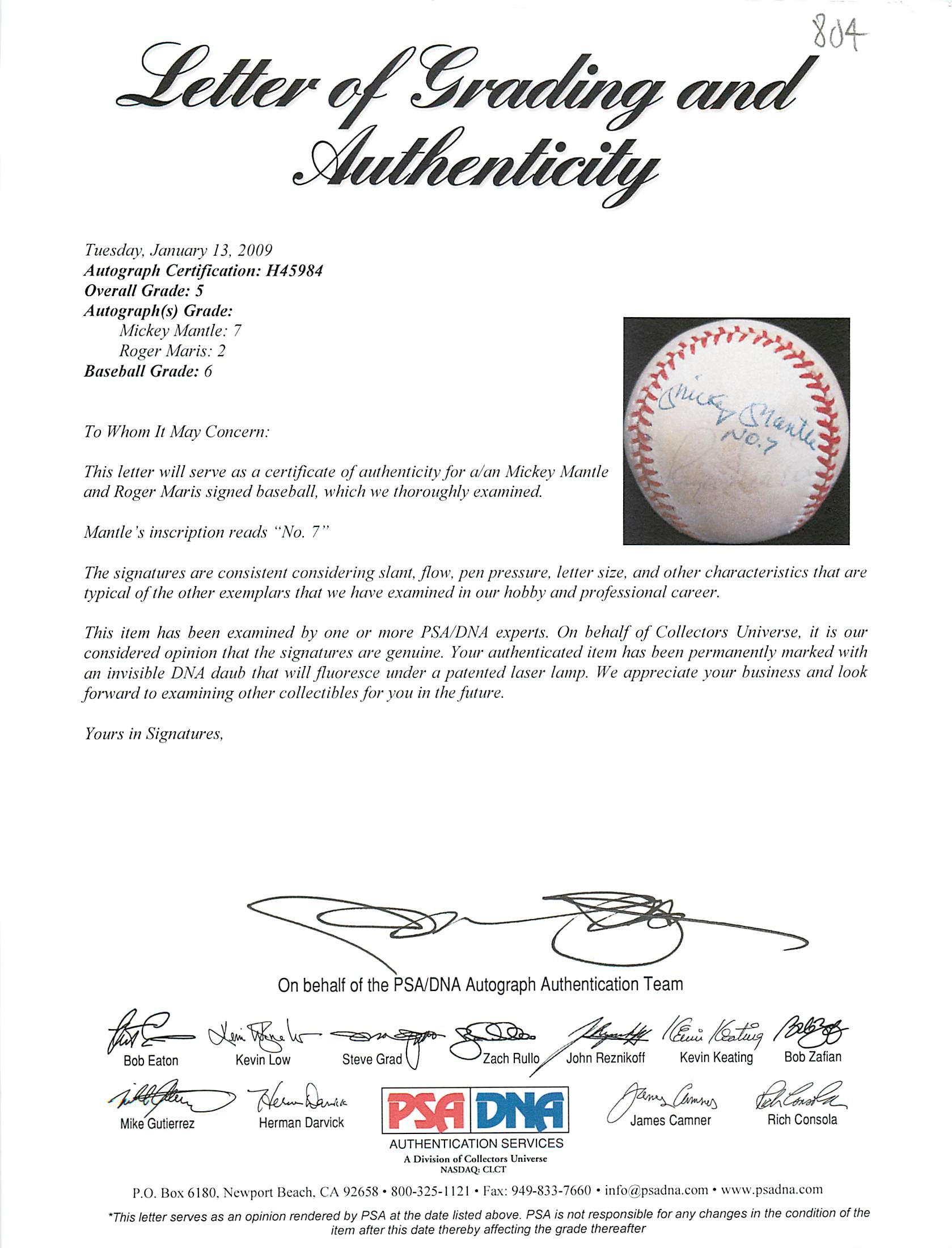 This Autographed Charles Feeney Onl Baseball with the inscription of "No. 7" has been Personally Signed by Mickey Mantle & Roger Maris of the New York Yankees. This item is 100% Authentic and comes with a PSA/DNA Certification Card and a matching numbered Hologram.The authenticity can be verified on Professional Sports Authenticator website. Press Pass Collectibles only offers Authentic Autographs by Mickey Mantle & Roger Maris through Signings, In-Person Signings or Private Collections to include a 100% money back Lifetime Authenticity Guarantee.