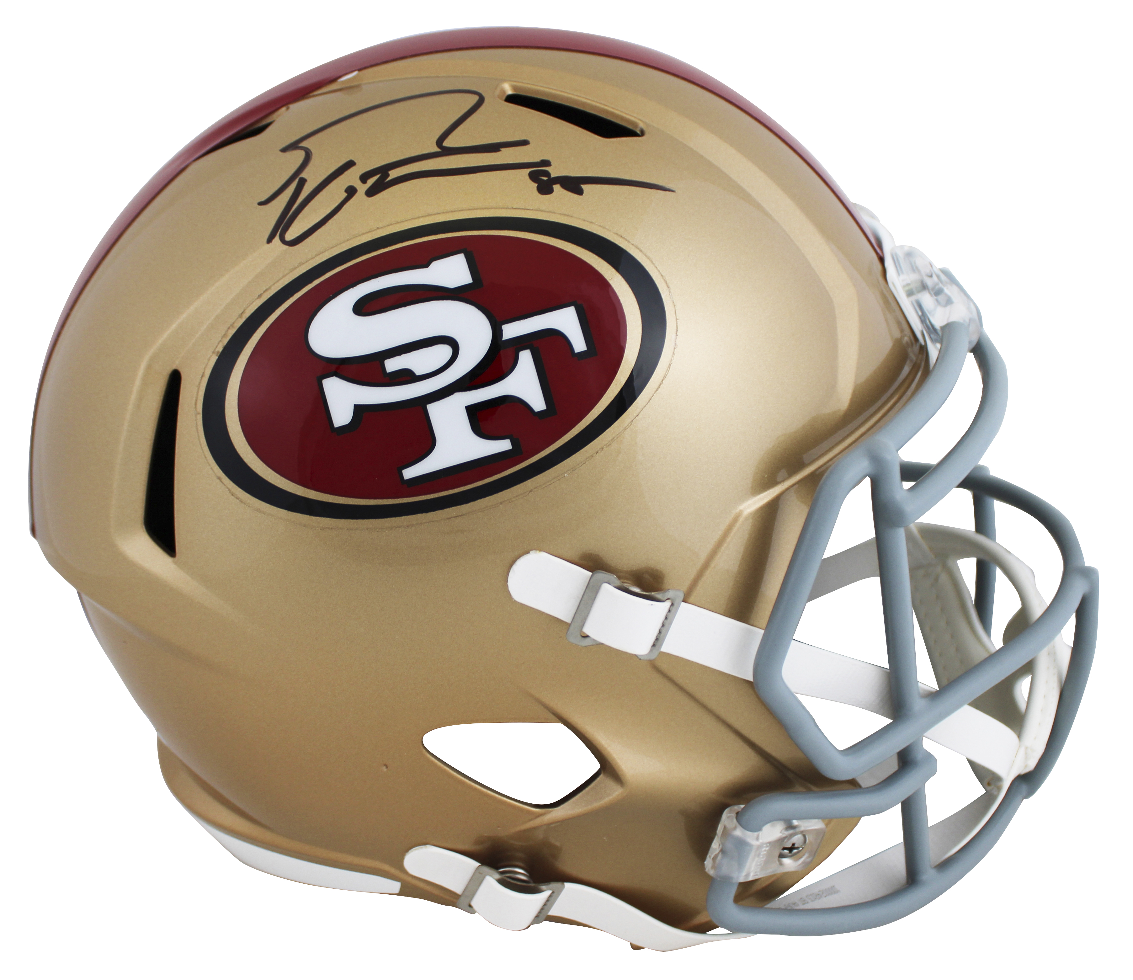 This Autographed Full Size Speed Rep Helmet has been Personally Signed by George Kittle of the San Francisco 49ers. This item is 100% Authentic to include a hologram by Beckett Authentication Services. This item may come with the new Beckett Authentication hologram that has a scannable QR code rather than the traditional COA. If you would like to have a COA, you are welcome to reach out to Beckett for a printed certification once you receive your item. This is a BAS Witnessed Protection Program item which means a Beckett Authentication Service representative was present when this item was being signed. This is a stock item. We conducted an autograph signing with George Kittle and we have several of these available. The one you will receive will be of equal quality to the one pictured. This item can be verified through BAS Witnessed. Press Pass Collectibles only offers Authentic Autographs by George Kittle through Signings, In-Person Signings or Private Collections to include a 100% money back Lifetime Authenticity Guarantee.