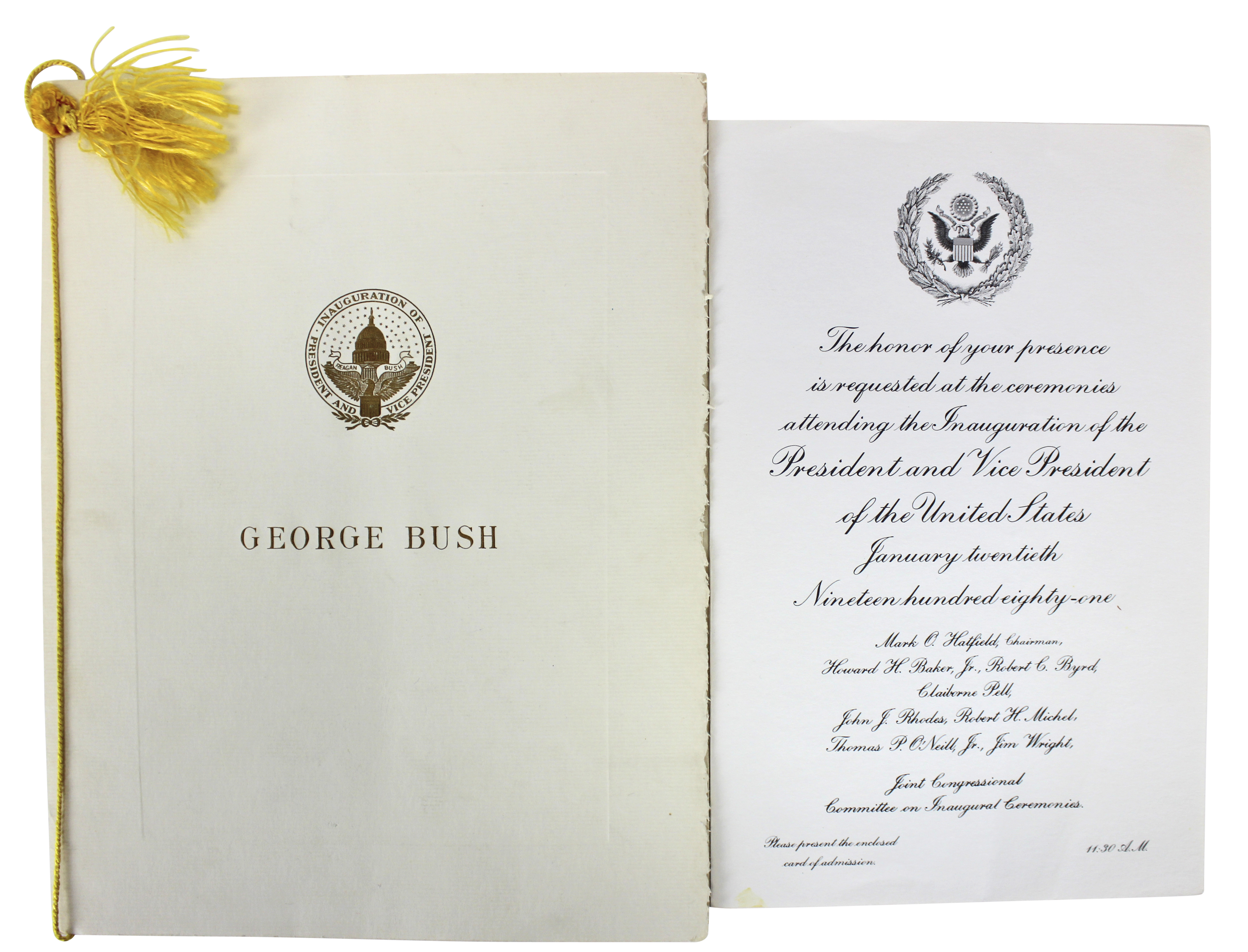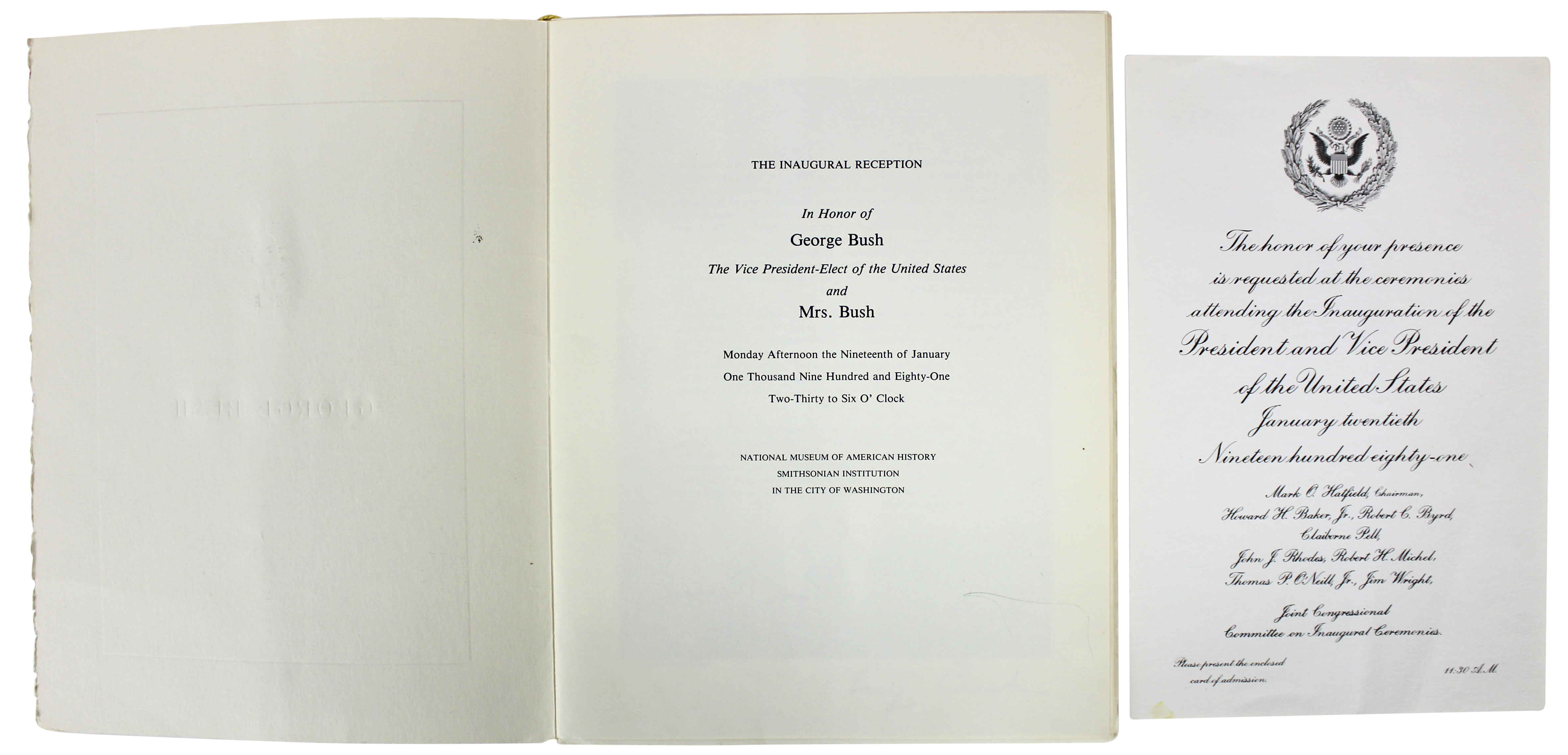 This Autographed 1981 8.5x11 Inauguaration Invitation Program has been Personally Signed by George H.W. Bush. This item is 100% Authentic to include a Certificate of Authenticity (COA) / hologram by Beckett Authentication Services.The authenticity can be verified on Beckett Authentication Services website. Press Pass Collectibles only offers Authentic Autographs by George H.W. Bush through Signings, In-Person Signings or Private Collections to include a 100% money back Lifetime Authenticity Guarantee.