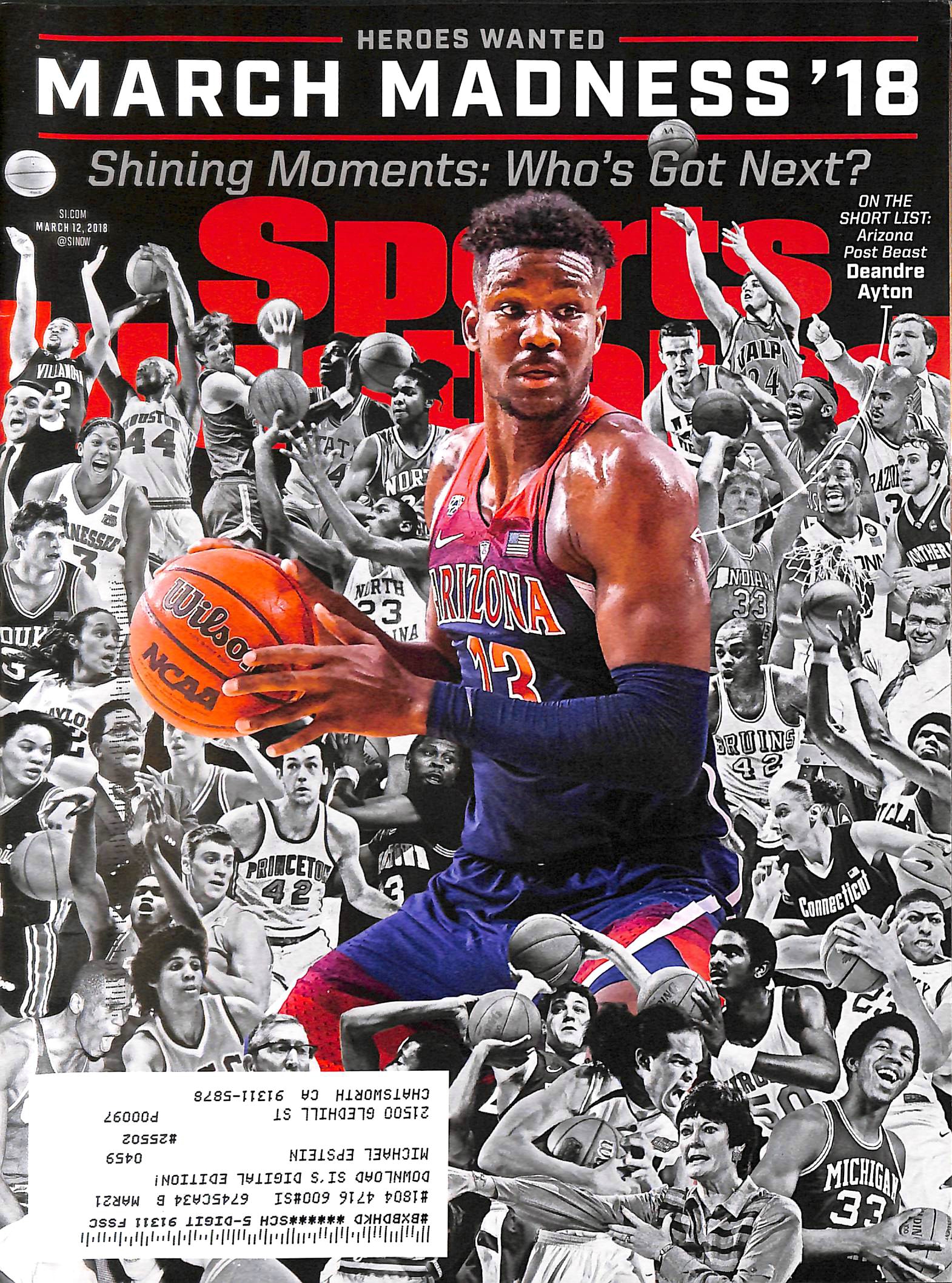This is a March 12, 2018 Sports Illustrated Magazine of Deandre Ayton on the cover. The magazine is in fair condition and is not new. The magazine has NO autograph/signature. Please see photo before purchase. This is a stock item in which we have several available. The one you will receive will be of equal quality to the one pictured. This item can be verified through. Press Pass Collectibles only offers Authentic Autographs by Deandre Ayton through Signings, In-Person Signings or Private Collections to include a 100% money back Lifetime Authenticity Guarantee.