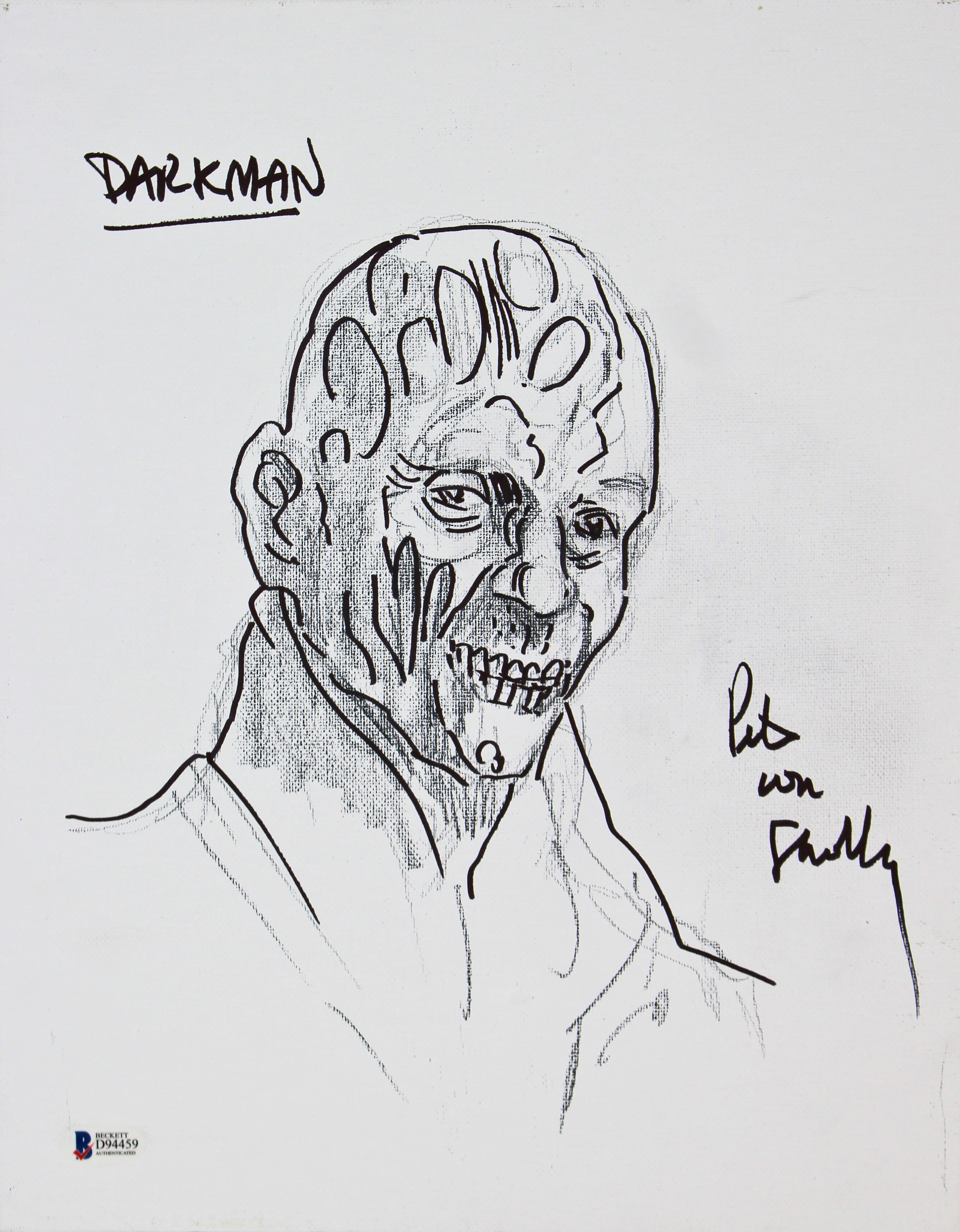 This Autographed 11x14 Original Art Darkman Sketch Canvas has been Personally Signed by Pete Von Sholly of Darkman. This item is 100% Authentic to include a Certificate of Authenticity (COA) / hologram by Beckett Authentication Services.The authenticity can be verified on Beckett Authentication Services website. Please refer to photos for condition of this item.Press Pass Collectibles only offers Authentic Autographs by Pete Von Sholly through Signings, In-Person Signings or Private Collections to include a 100% money back Lifetime Authenticity Guarantee.