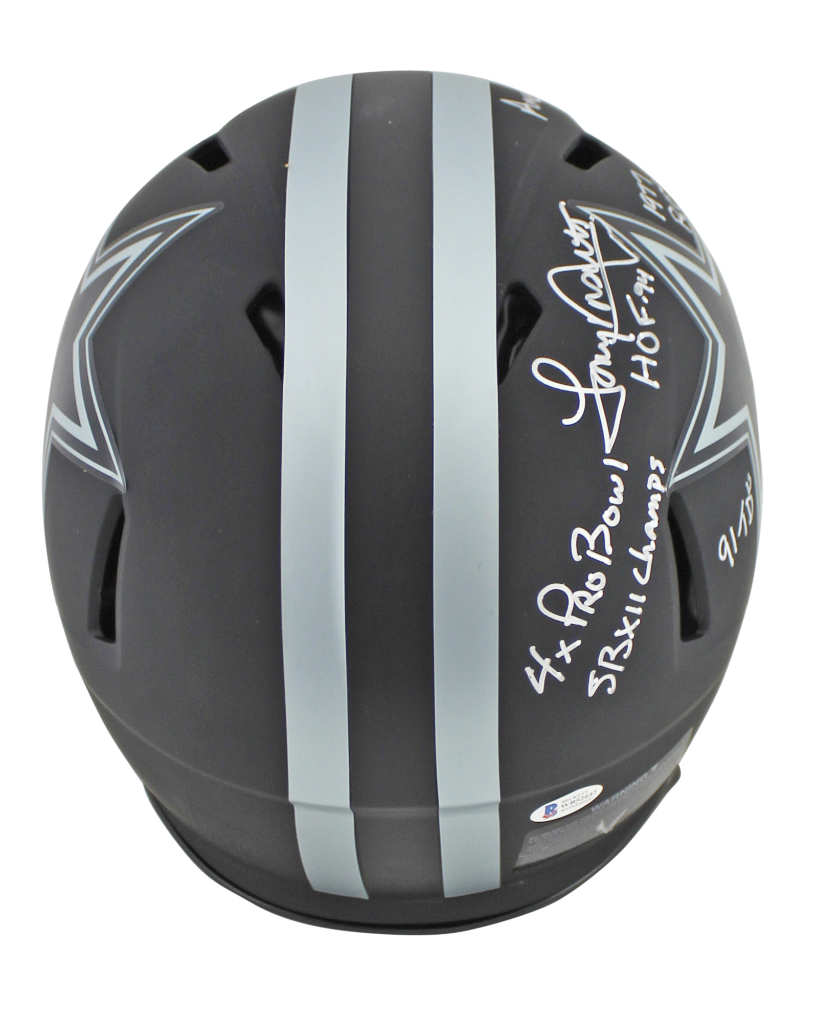 Tony Dorsett "Stat" Signed Proline Full Size Eclipse Speed Helmet Silver Sig BAS