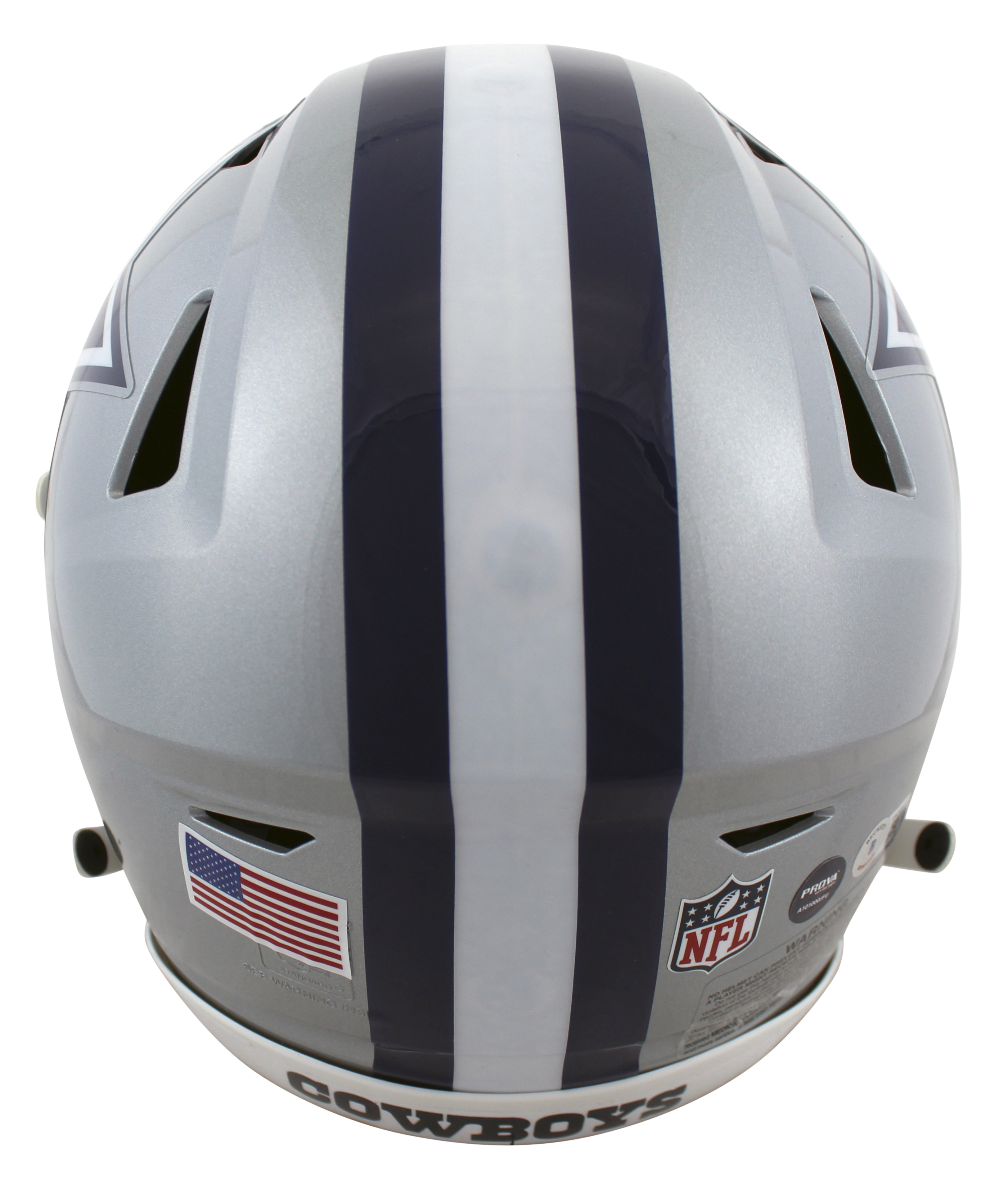This Autographed Authentic Riddell Speed Flex Full Size Helmet with the inscription of "HOF 2010" has been Personally Signed by Emmitt Smith of the Dallas Cowboys. This item may come with the new Beckett Authentication hologram that has a scannable QR code rather than the traditional COA. If you would like to have a COA, you are welcome to reach out to Beckett for a printed certification once you receive your item. This is a BAS Witnessed Protection Program item which means a Beckett Authentication Service representative was present when this item was being signed. This is a stock item. We conducted an autograph signing with Emmitt Smith and we have several of these available. The one you will receive will be of equal quality to the one pictured. This item can be verified through BAS Witnessed.