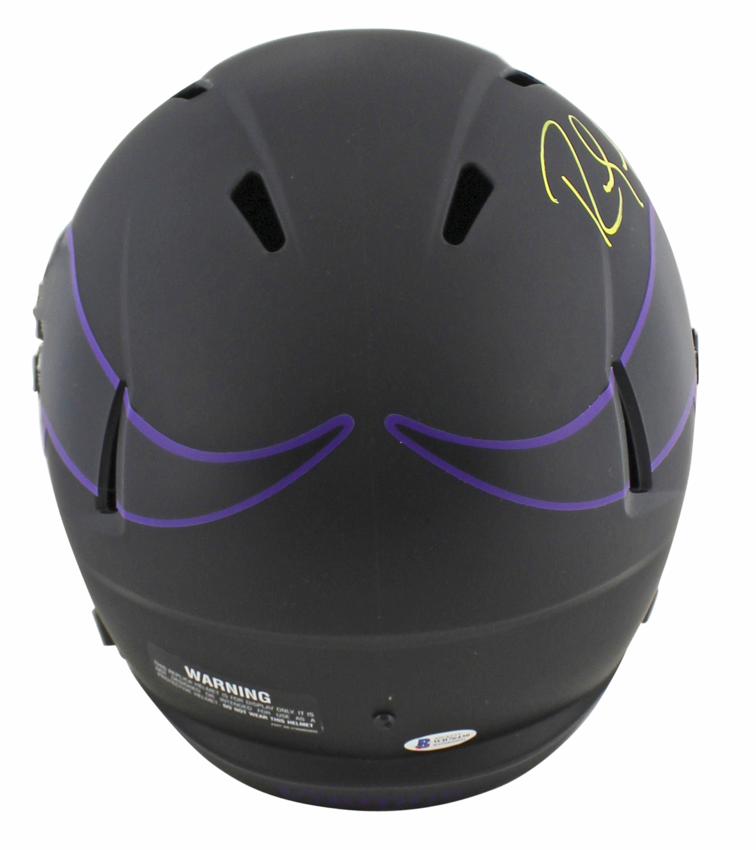 This Autographed Alternate Eclipse Riddell Full Size Speed Rep Helmet has been Personally Signed by Randy Moss of the Minnesota Vikings. This item is 100% Authentic to include a Certificate of Authenticity (COA) / hologram by Beckett Authentication Services. This is a BAS Witnessed Protection Program item which means a Beckett Authentication Service representative was present when this item was being signed. This is a stock item. We conducted an autograph signing with Randy Moss and we have several of these available. The one you will receive will be of equal quality to the one pictured. This item can be verified through BAS Witnessed.