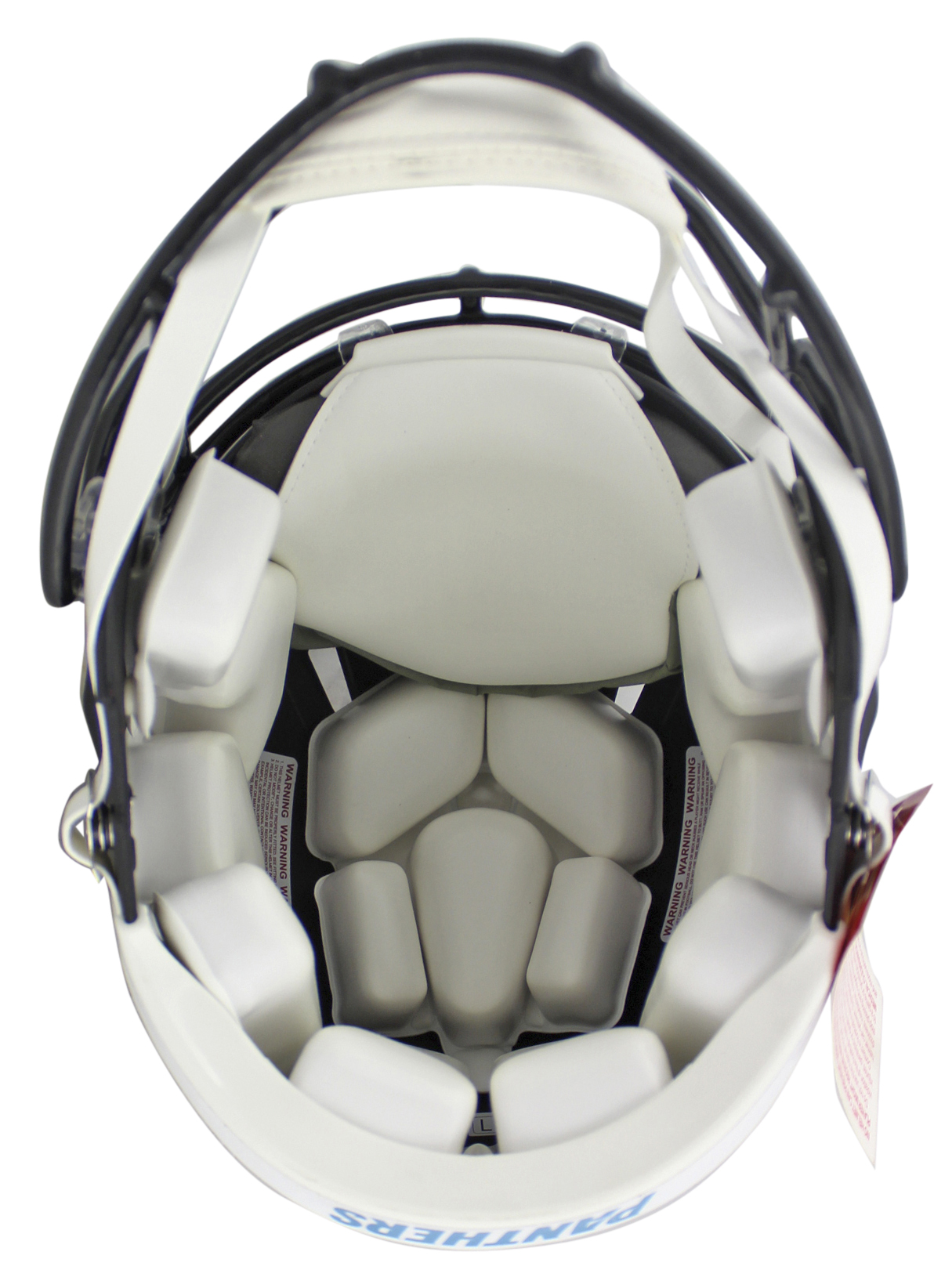 This Autographed Authentic Proline F/S Speed Helmet with the inscription of "Keep Pounding" has been Personally Signed by Luke Kuechly of the Carolina Panthers. This item is 100% Authentic to include a Certificate of Authenticity (COA) / hologram by Beckett Authentication Services. This is a BAS Witnessed Protection Program item which means a Beckett Authentication Service representative was present when this item was being signed. This is a stock item. We conducted an autograph signing with Luke Kuechly and we have several of these available. The one you will receive will be of equal quality to the one pictured. This item can be verified through BAS Witnessed. Press Pass Collectibles only offers Authentic Autographs by Luke Kuechly through Signings, In-Person Signings or Private Collections to include a 100% money back Lifetime Authenticity Guarantee.
