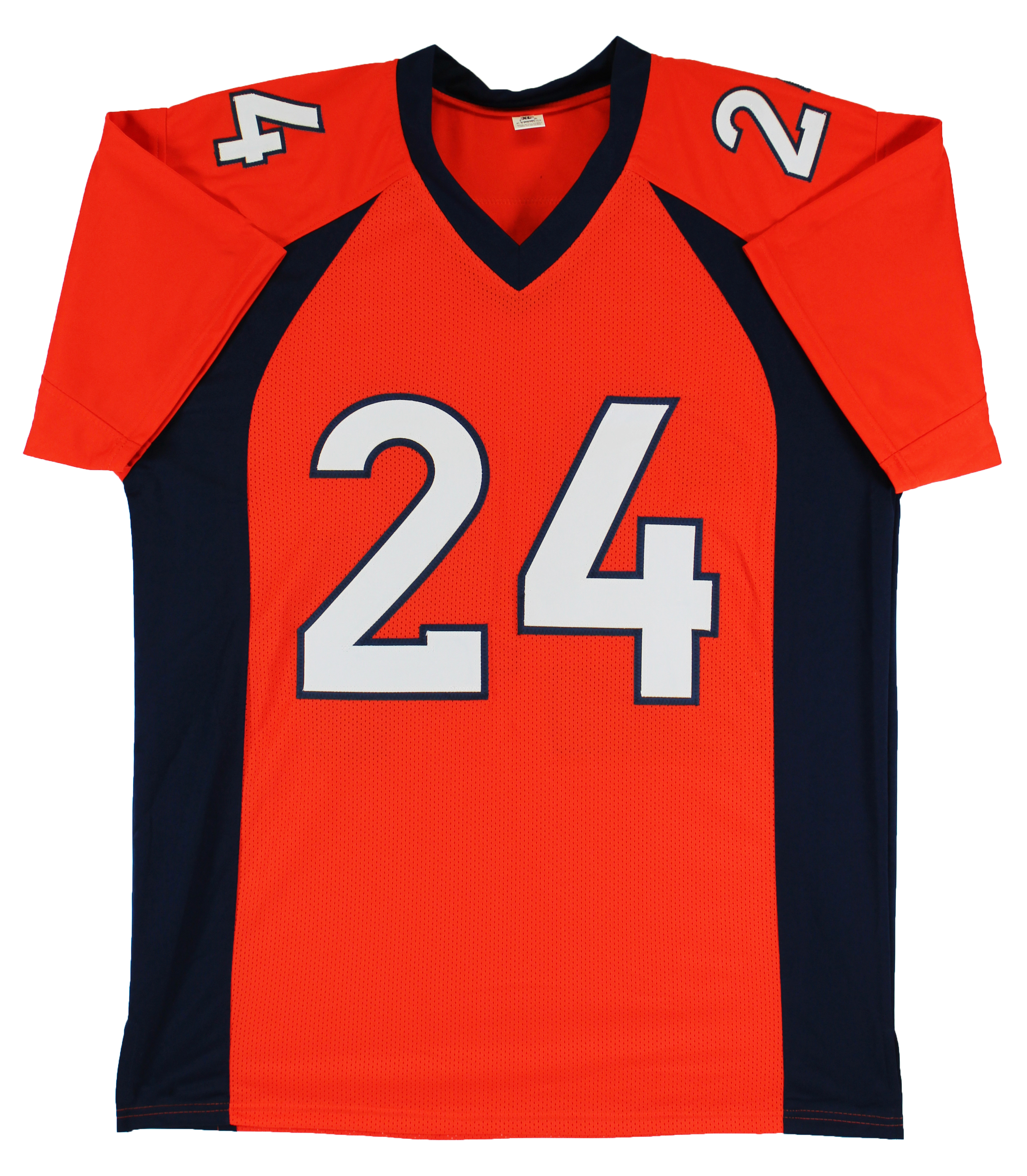This Autographed Orange Pro Style Jersey has been Personally Signed by Champ Bailey of the Denver Broncos. This item may come with the new Beckett Authentication hologram that has a scannable QR code rather than the traditional COA. If you would like to have a COA, you are welcome to reach out to Beckett for a printed certification once you receive your item. This is a BAS Witnessed Protection Program item which means a Beckett Authentication Service representative was present when this item was being signed. This is a stock item. We conducted an autograph signing with Champ Bailey and we have several of these available. The one you will receive will be of equal quality to the one pictured. This item can be verified through BAS Witnessed. This is a X-Large sized, non-branded, custom-stitched Jersey.