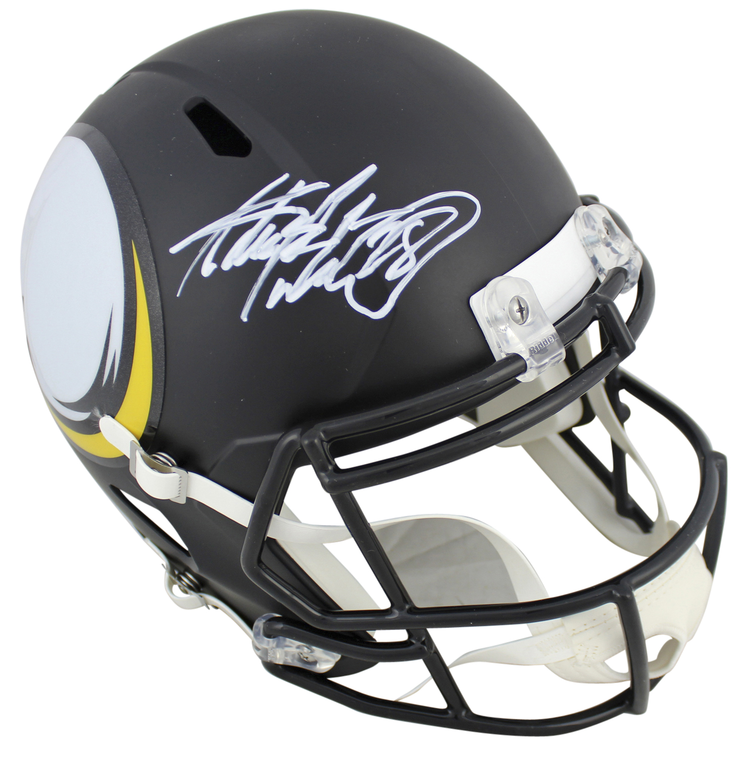 This Autographed Alternate Amp Riddell Full Size Speed Rep Helmet has been Personally Signed by Adrian Peterson of the Minnesota Vikings. This item is 100% Authentic to include a Certificate of Authenticity (COA) / hologram by Beckett Authentication Services. This is a BAS Witnessed Protection Program item which means a Beckett Authentication Service representative was present when this item was being signed. This is a stock item. We conducted an autograph signing with Adrian Peterson and we have several of these available. The one you will receive will be of equal quality to the one pictured. This item can be verified through BAS Witnessed.