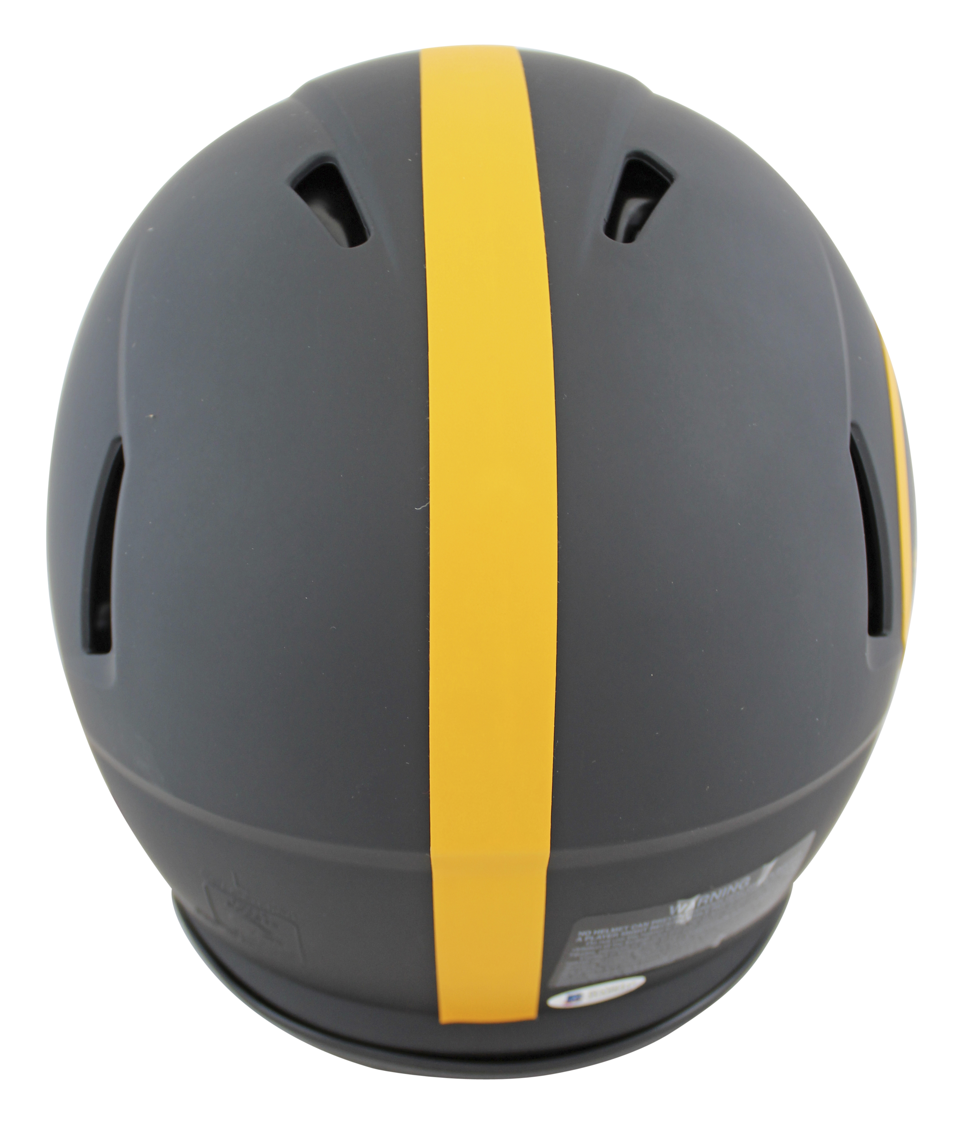 This Autographed Alternate Eclipse Riddell Authentic Full Size Speed Proline Helmet with the inscription of "HOF 20" has been Personally Signed by Troy Polamalu of the Pittsburgh Steelers. This item is 100% Authentic to include a Certificate of Authenticity (COA) / hologram by Beckett Authentication Services. This is a BAS Witnessed Protection Program item which means a Beckett Authentication Service representative was present when this item was being signed. This is a stock item. We conducted an autograph signing with Troy Polamalu and we have several of these available. The one you will receive will be of equal quality to the one pictured. This item can be verified through BAS Witnessed.