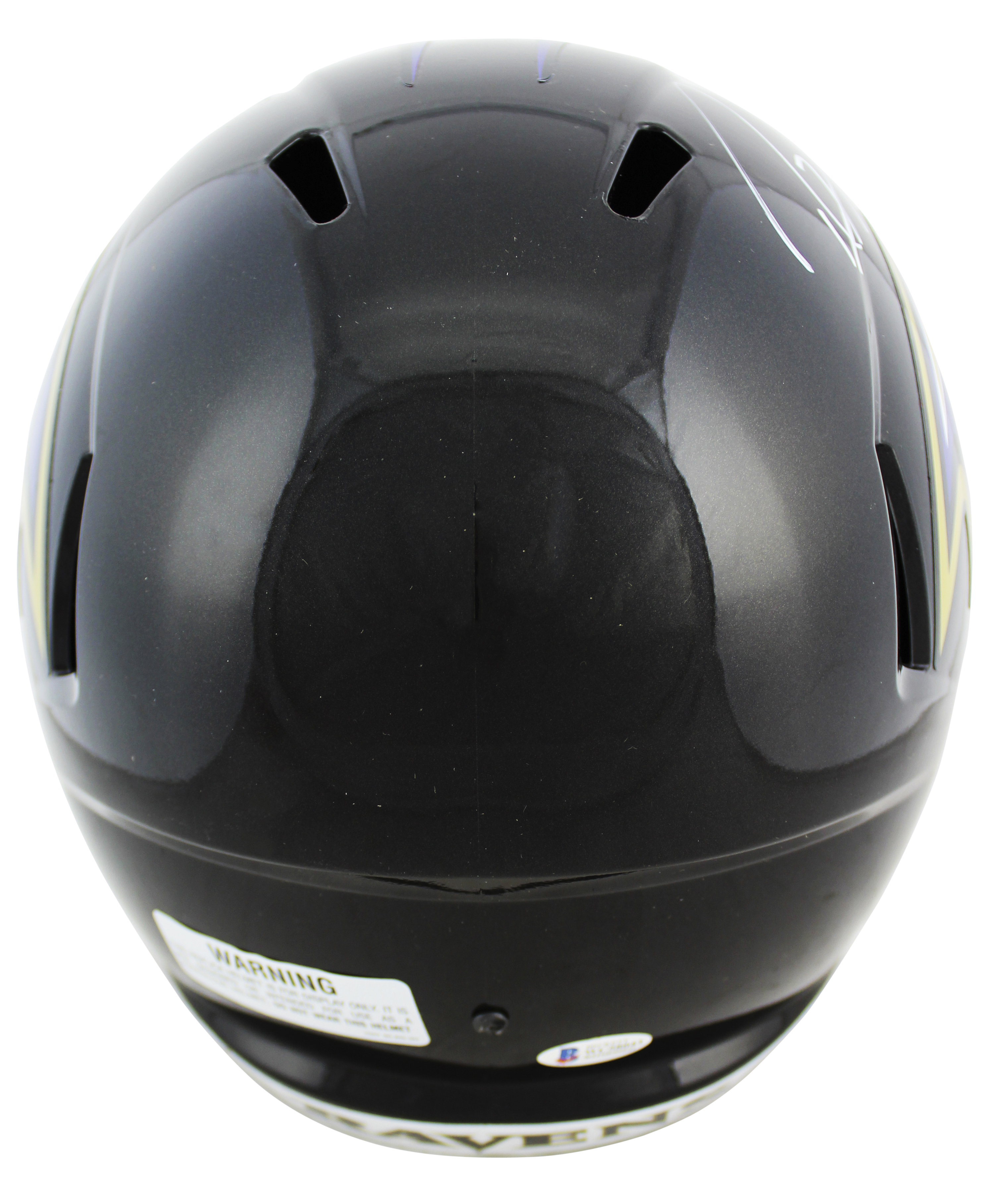 This Autographed w/ White Signature Full Size Speed Rep Helmet has been Personally Signed by Ray Lewis of the Baltimore Ravens. This item is 100% Authentic to include a Certificate of Authenticity (COA) / hologram by Beckett Authentication Services. This is a BAS Witnessed Protection Program item which means a Beckett Authentication Service representative was present when this item was being signed. This is a stock item. We conducted an autograph signing with Ray Lewis and we have several of these available. The one you will receive will be of equal quality to the one pictured. This item can be verified through BAS Witnessed.