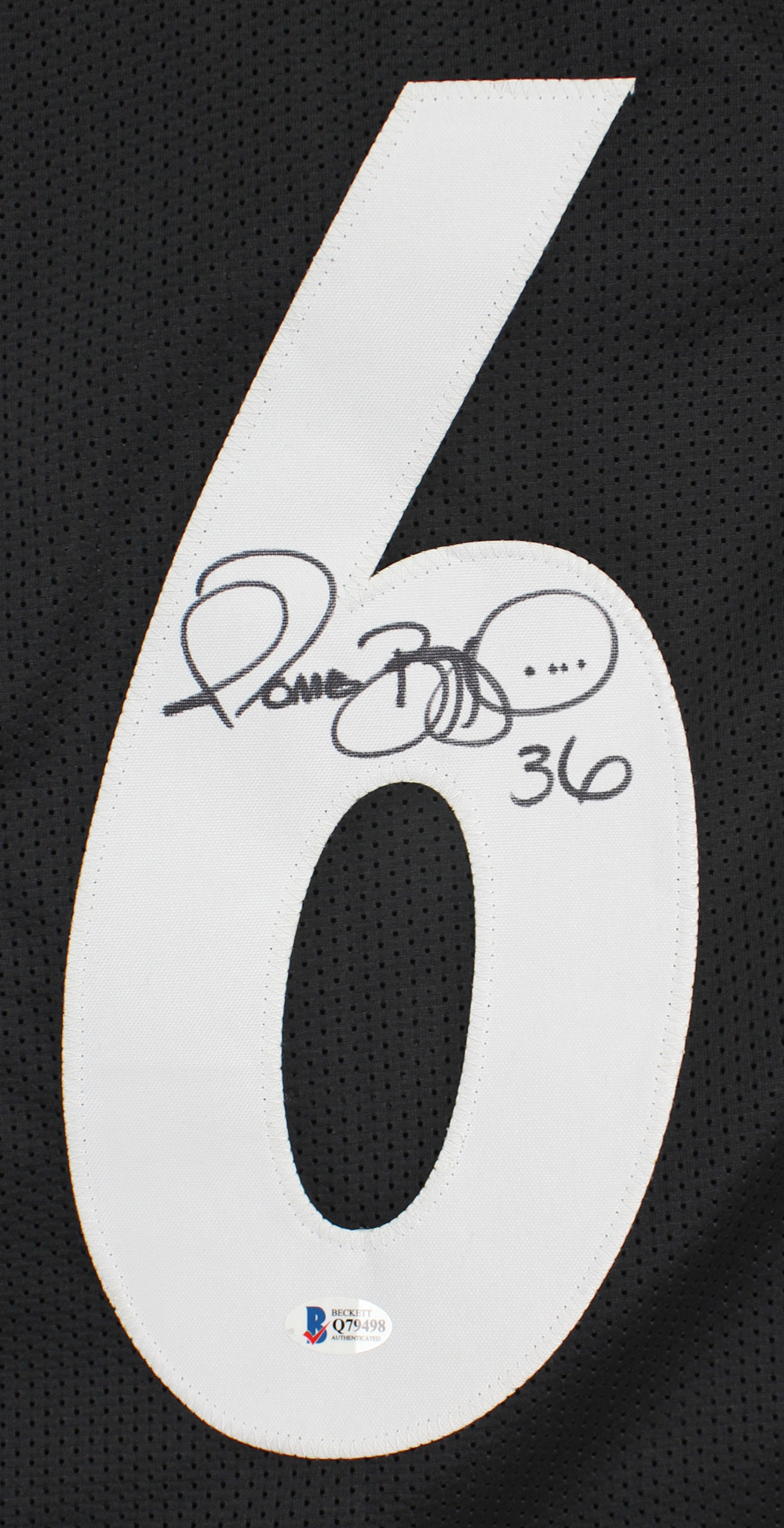 This Autographed Black Framed Jersey has been Personally Signed by Jerome Bettis of the Pittsburgh Steelers. This item is 100% Authentic to include a hologram by Beckett Authentication Services. This item will come with the new Beckett Authentication hologram that has a scannable QR code rather than the traditional COA. If you would like to have a COA, you are welcome to reach out to Beckett for a printed certification once you receive your item. This is a BAS Witnessed Protection Program item which means a Beckett Authentication Service representative was present when this item was being signed. This is a stock item. We conducted an autograph signing with Jerome Bettis and we have several of these available. The one you will receive will be of equal quality to the one pictured. This item can be verified through BAS. This is a X-Large sized, non-branded, custom-stitched Framed Jersey. This item will be professionally framed to overall dimensions of approximately 32 x 37 inches.