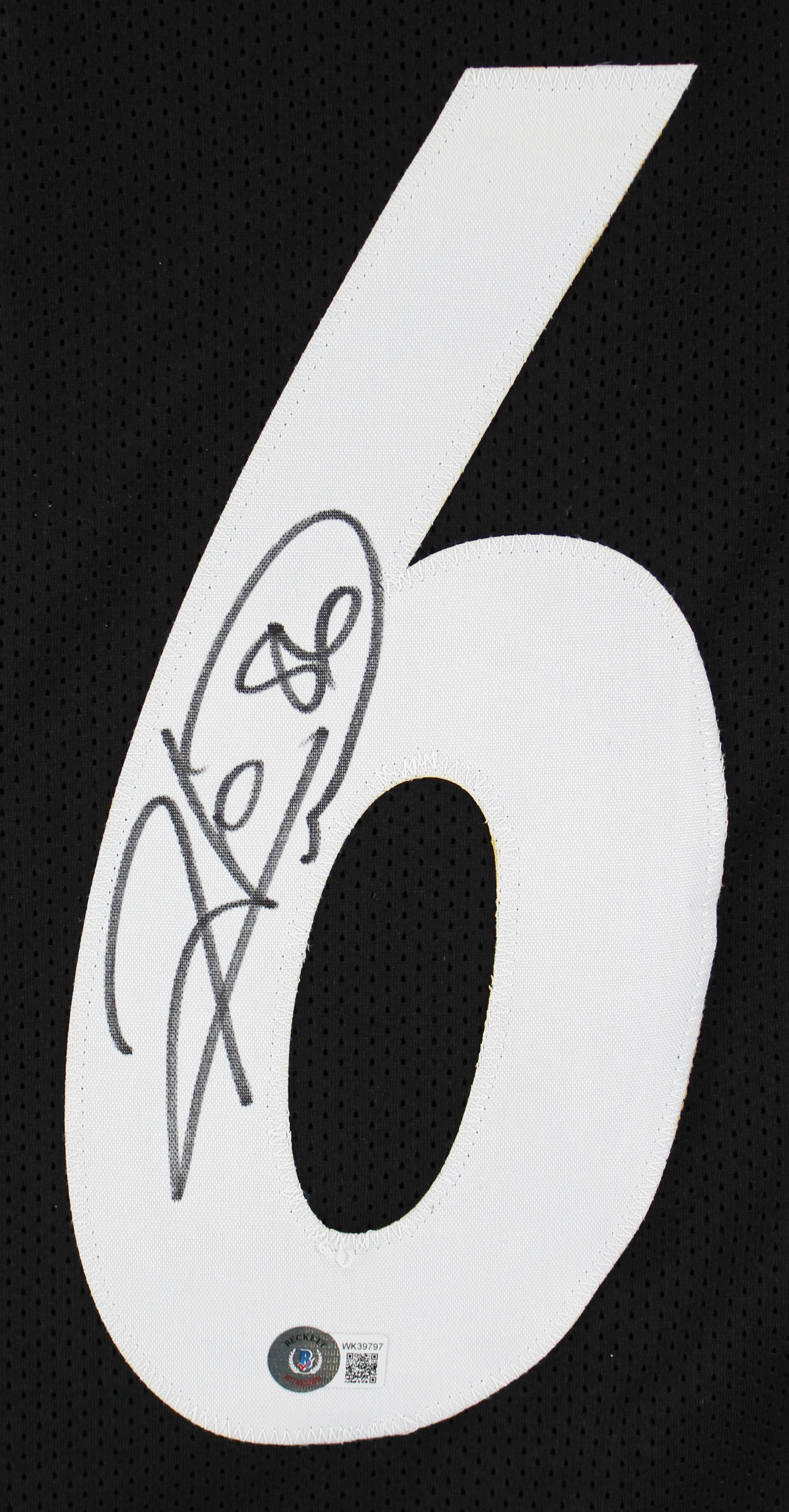 This Autographed Black Framed Jersey has been Personally Signed by Hines Ward of the Pittsburgh Steelers. This item is 100% Authentic to include a hologram by Beckett Authentication Services. This item may come with the new Beckett Authentication hologram that has a scannable QR code rather than the traditional COA. If you would like to have a COA, you are welcome to reach out to Beckett for a printed certification once you receive your item. This is a BAS Witnessed Protection Program item which means a Beckett Authentication Service representative was present when this item was being signed. This is a stock item. We conducted an autograph signing with Hines Ward and we have several of these available. The one you will receive will be of equal quality to the one pictured. This item can be verified through BAS Witnessed. This item has been professionally framed to overall dimensions of approximately 32 x 37 inches. This is a X-Large sized, non-branded, custom-stitched Framed Jersey. Your jersey will be signed either on the #8 or #6, please refer to how signature looks depending on placement. These jerseys are framed to order, it takes approximately 3-4 business days for framing to be completed.
