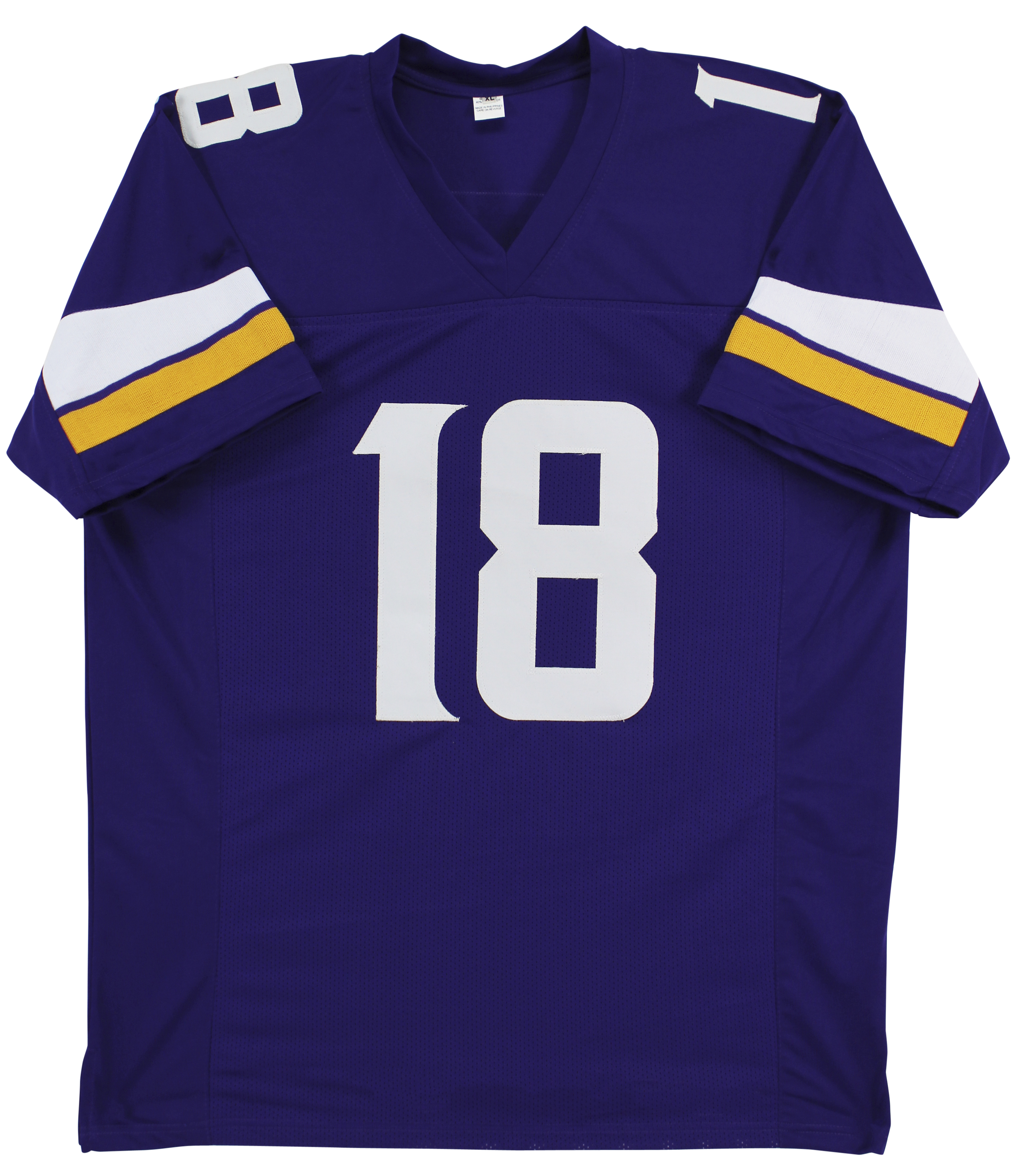 This Autographed Purple Jersey has been Personally Signed by Justin Jefferson of the Minnesota Vikings. This item is 100% Authentic to include a hologram by Beckett Authentication Services. This item may come with the new Beckett Authentication hologram that has a scannable QR code rather than the traditional COA. If you would like to have a COA, you are welcome to reach out to Beckett for a printed certification once you receive your item. This is a BAS Witnessed Protection Program item which means a Beckett Authentication Service representative was present when this item was being signed. This is a stock item. We conducted an autograph signing with Justin Jefferson and we have several of these available. The one you will receive will be of equal quality to the one pictured. This item can be verified through BAS Witnessed. This is a X-Large sized, non-branded, custom-stitched Jersey.