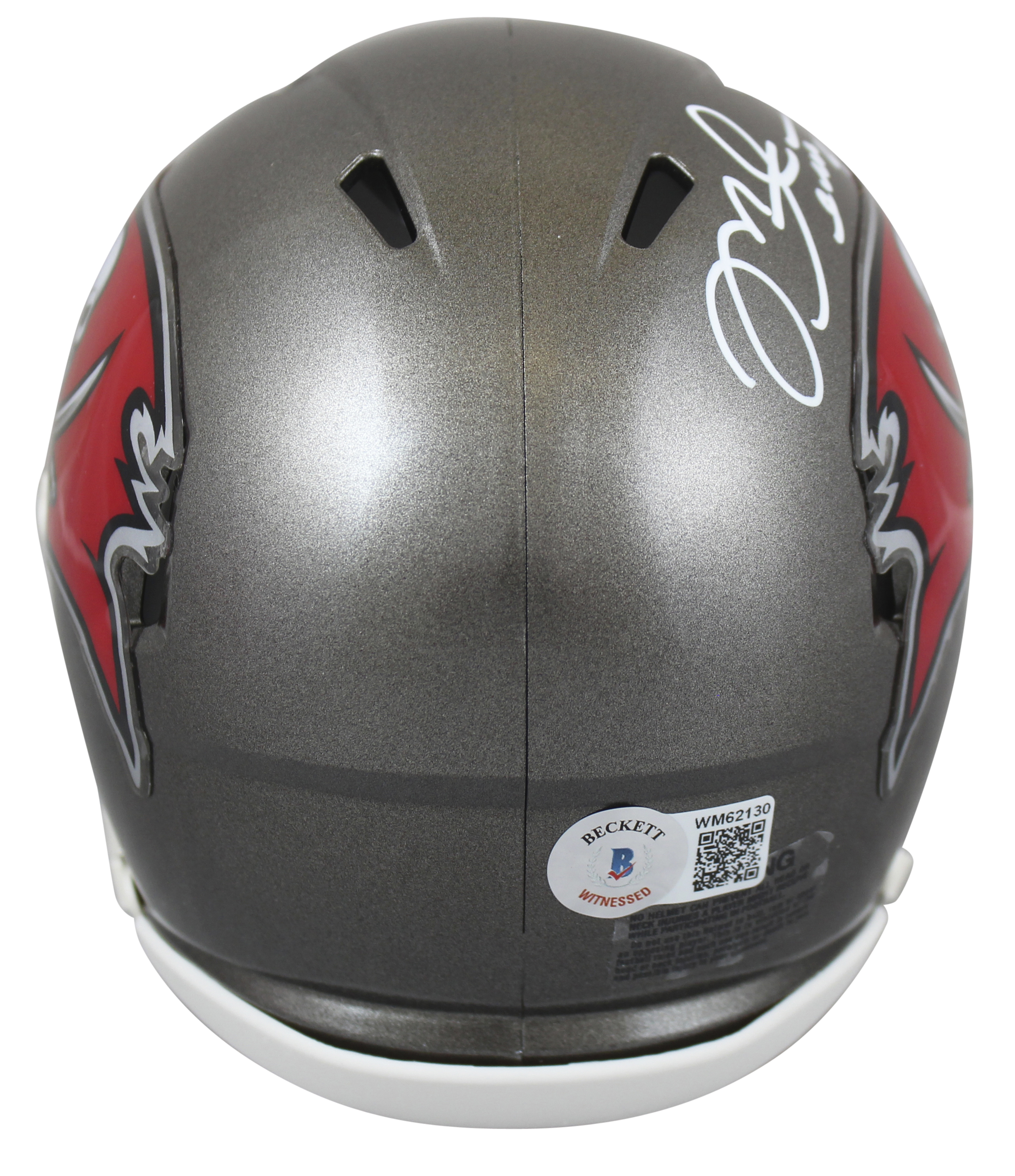This Autographed Speed Mini Helmet has been Personally Signed by Mike Alstott of the Tampa Bay Buccaneers. This item is 100% Authentic to include a hologram by Beckett Authentication Services. This item may come with the new Beckett Authentication hologram that has a scannable QR code rather than the traditional COA. If you would like to have a COA, you are welcome to reach out to Beckett for a printed certification once you receive your item. This is a BAS Witnessed Protection Program item which means a Beckett Authentication Service representative was present when this item was being signed. This is a stock item. We conducted an autograph signing with Mike Alstott and we have several of these available. The one you will receive will be of equal quality to the one pictured. This item can be verified through BAS Witnessed.