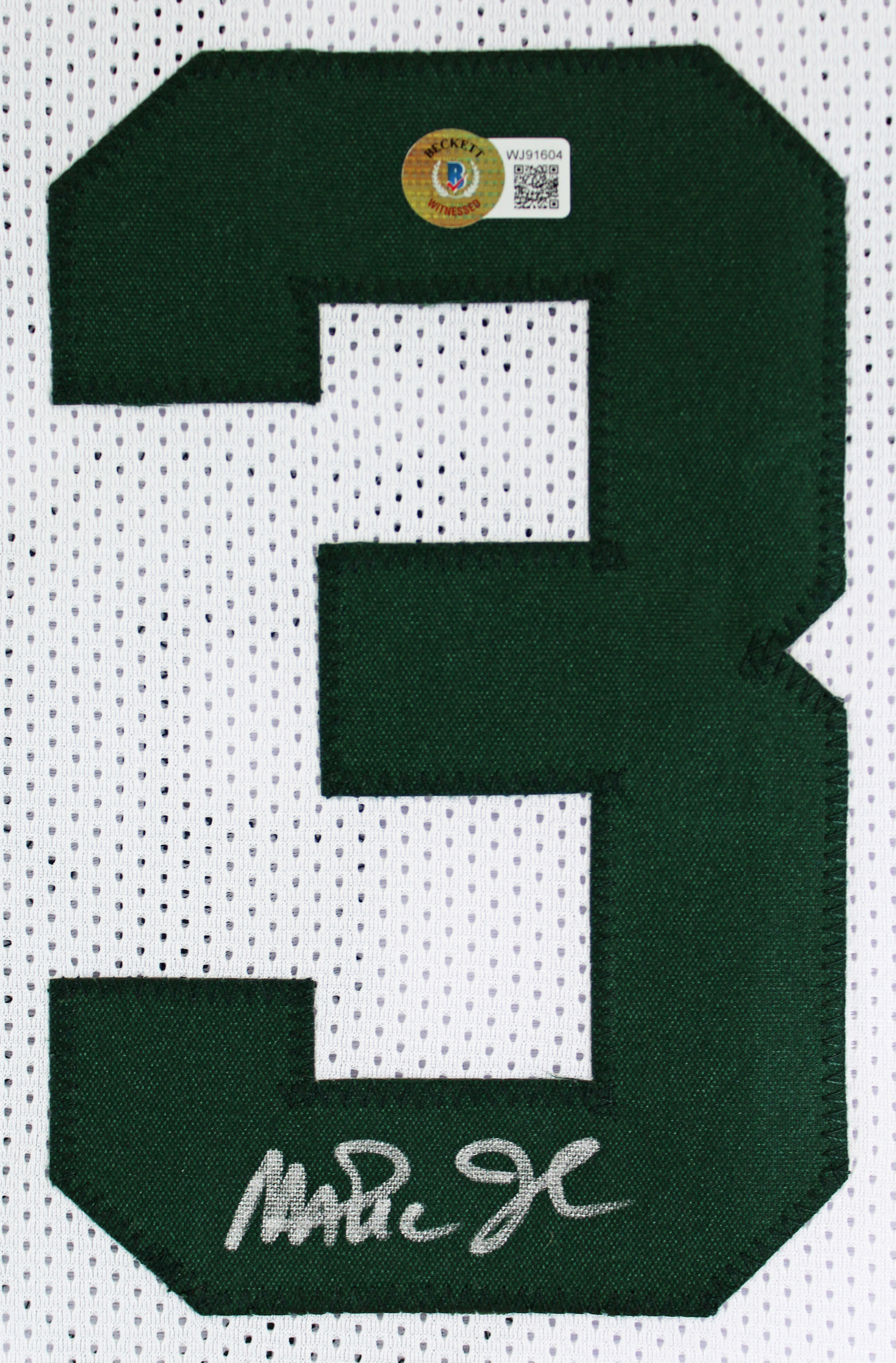 This Autographed White Jersey has been Personally Signed by Magic Johnson of the Michigan State Spartans. This item is 100% Authentic to include a hologram by Beckett Authentication Services. This item may come with the new Beckett Authentication hologram that has a scannable QR code rather than the traditional COA. If you would like to have a COA, you are welcome to reach out to Beckett for a printed certification once you receive your item. This is a BAS Witnessed Protection Program item which means a Beckett Authentication Service representative was present when this item was being signed. This is a stock item. We conducted an autograph signing with Magic Johnson and we have several of these available. The one you will receive will be of equal quality to the one pictured. This item can be verified through BAS Witnessed. This is a X-Large sized, non-branded, custom-stitched Jersey.