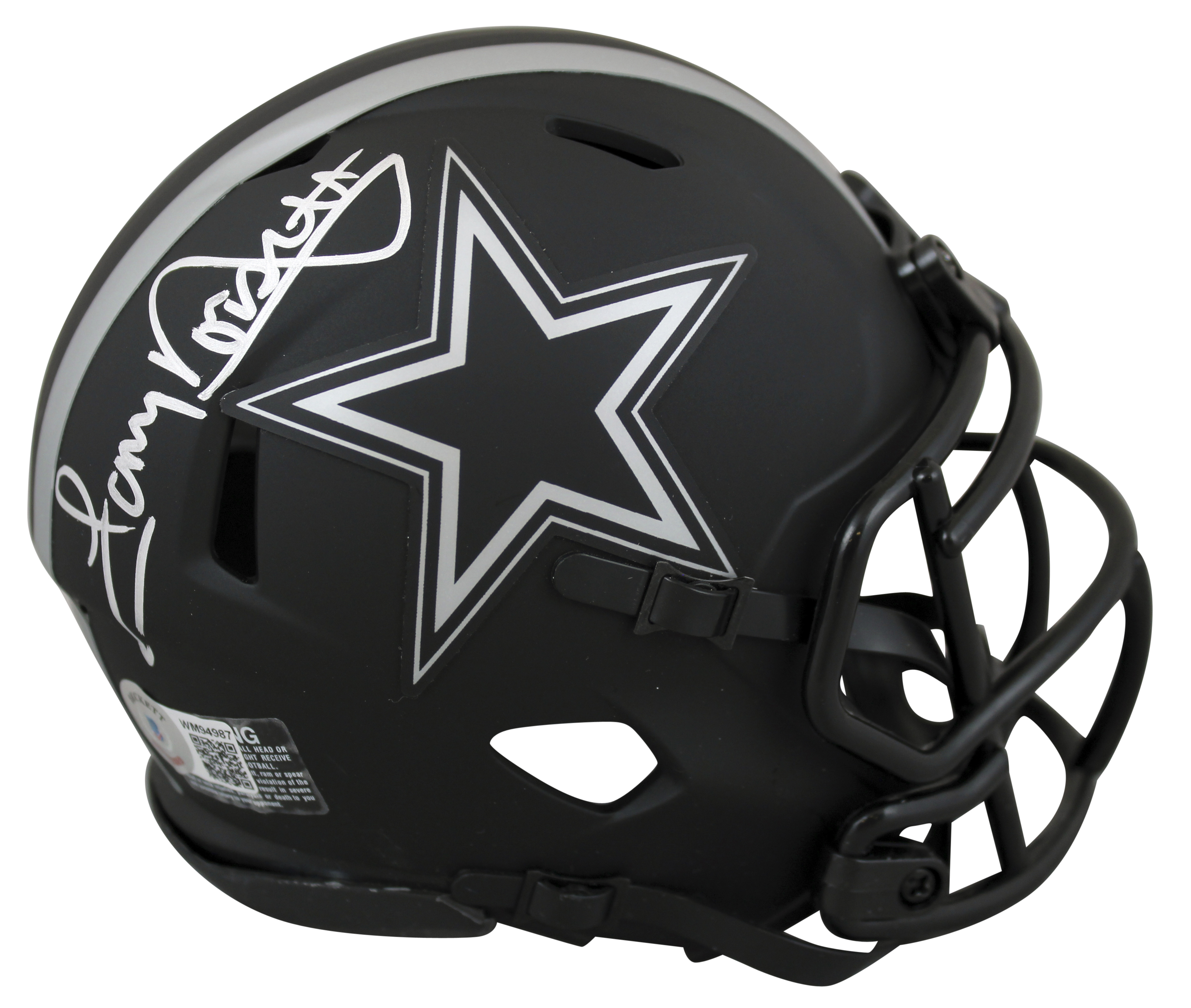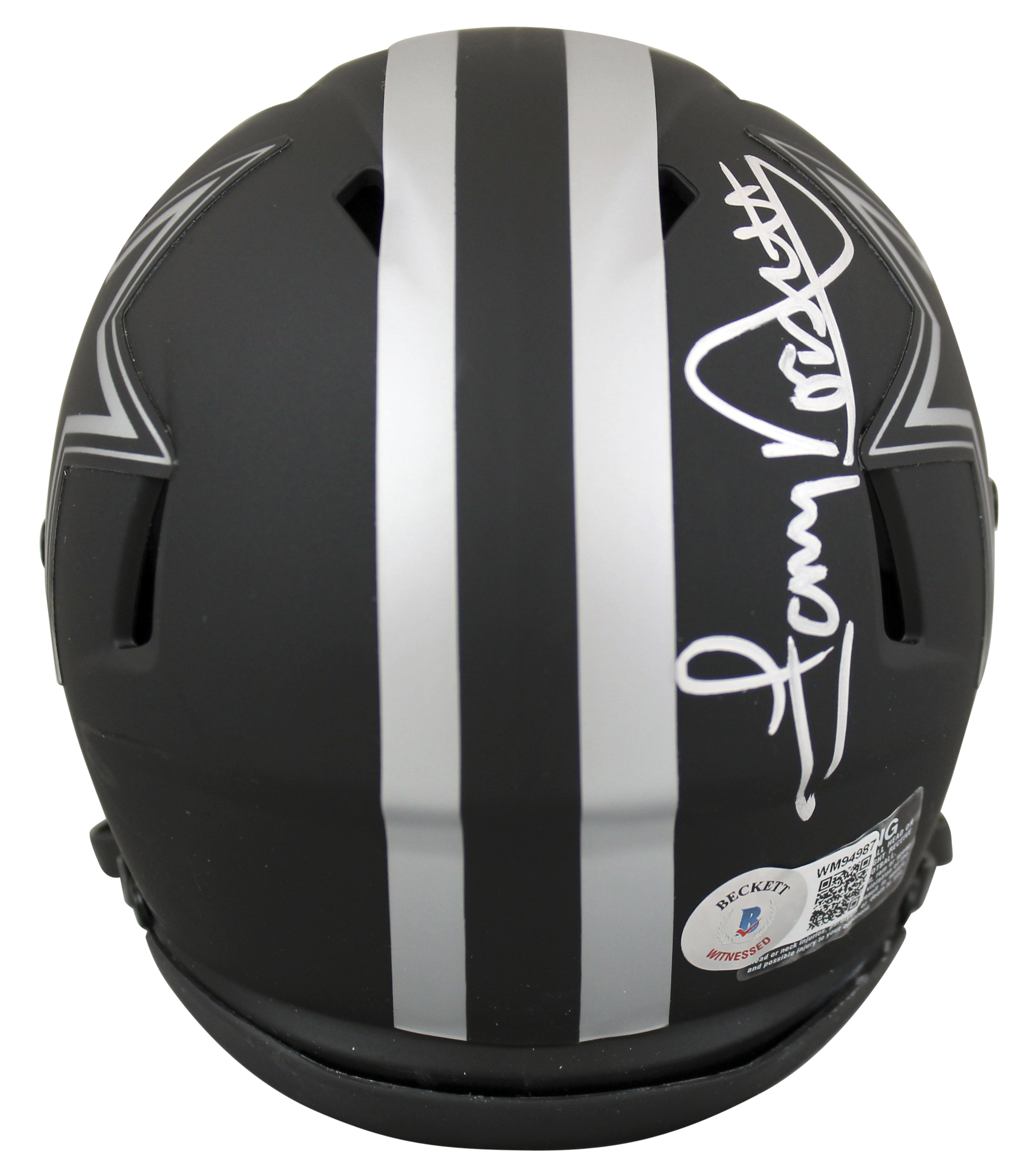 This Autographed w/ Silver Signature Alternate Eclipse Speed Mini Helmet has been Personally Signed by Tony Dorsett of the Dallas Cowboys. This item is 100% Authentic to include a hologram by Beckett Authentication Services. This item may come with the new Beckett Authentication hologram that has a scannable QR code rather than the traditional COA. If you would like to have a COA, you are welcome to reach out to Beckett for a printed certification once you receive your item. This is a BAS Witnessed Protection Program item which means a Beckett Authentication Service representative was present when this item was being signed. This is a stock item. We conducted an autograph signing with Tony Dorsett and we have several of these available. The one you will receive will be of equal quality to the one pictured. This item can be verified through BAS Witnessed.