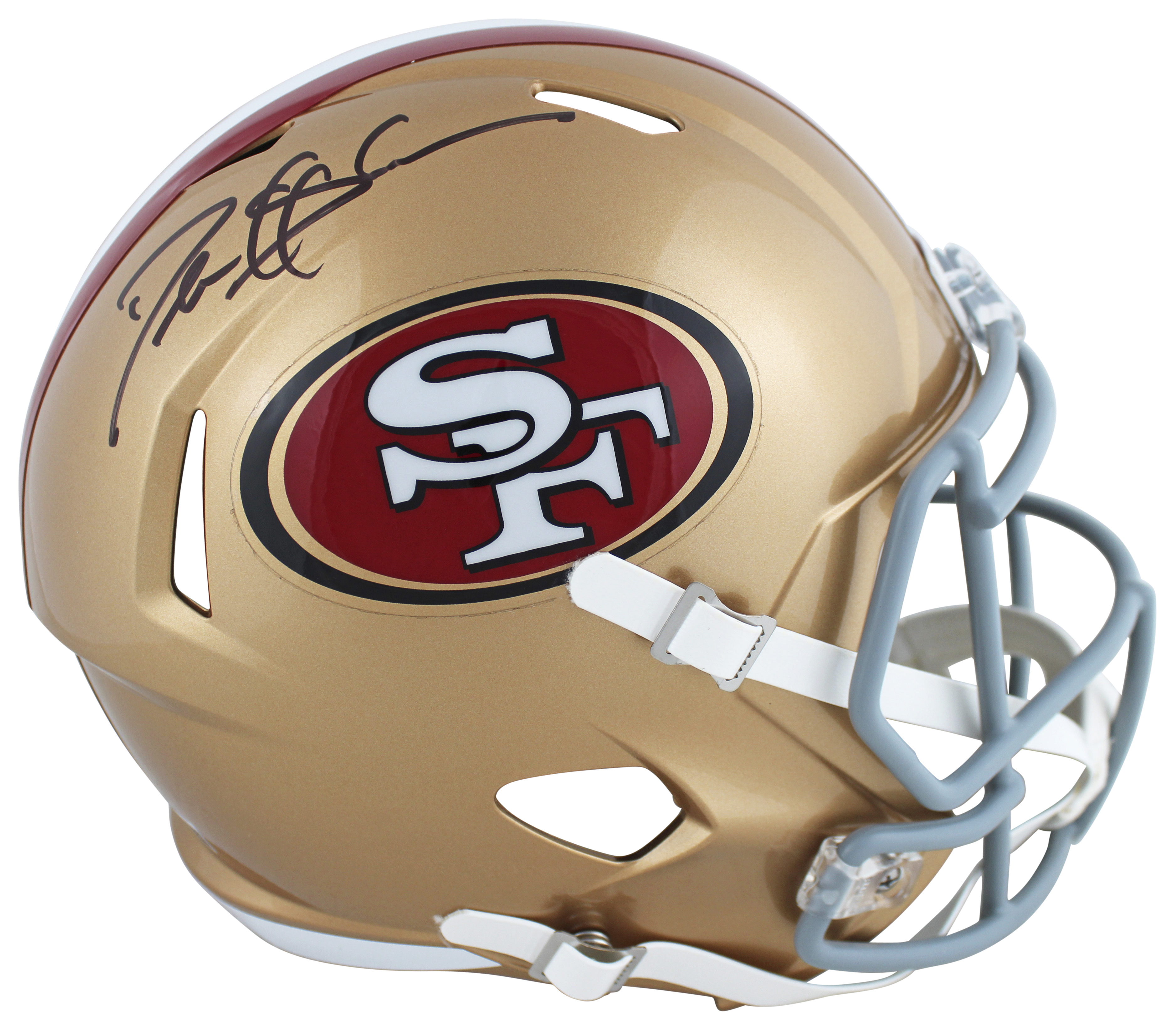 This Autographed Full Size Speed Rep Helmet has been Personally Signed by Deion Sanders of the San Francisco 49ers. This item is 100% Authentic to include a hologram by Beckett Authentication Services. This item will come with the new Beckett Authentication hologram that has a scannable QR code rather than the traditional COA. If you would like to have a COA, you are welcome to reach out to Beckett for a printed certification once you receive your item. This is a BAS Witnessed Protection Program item which means a Beckett Authentication Service representative was present when this item was being signed. We conducted an autograph signing with Deion Sanders where multiples of the same item were signed. While the photographs are representative of this item, the size, placement and strength of the signature may vary. Each item is hand signed, therefore, each autograph is unique. This item can be verified through BAS Witnessed.