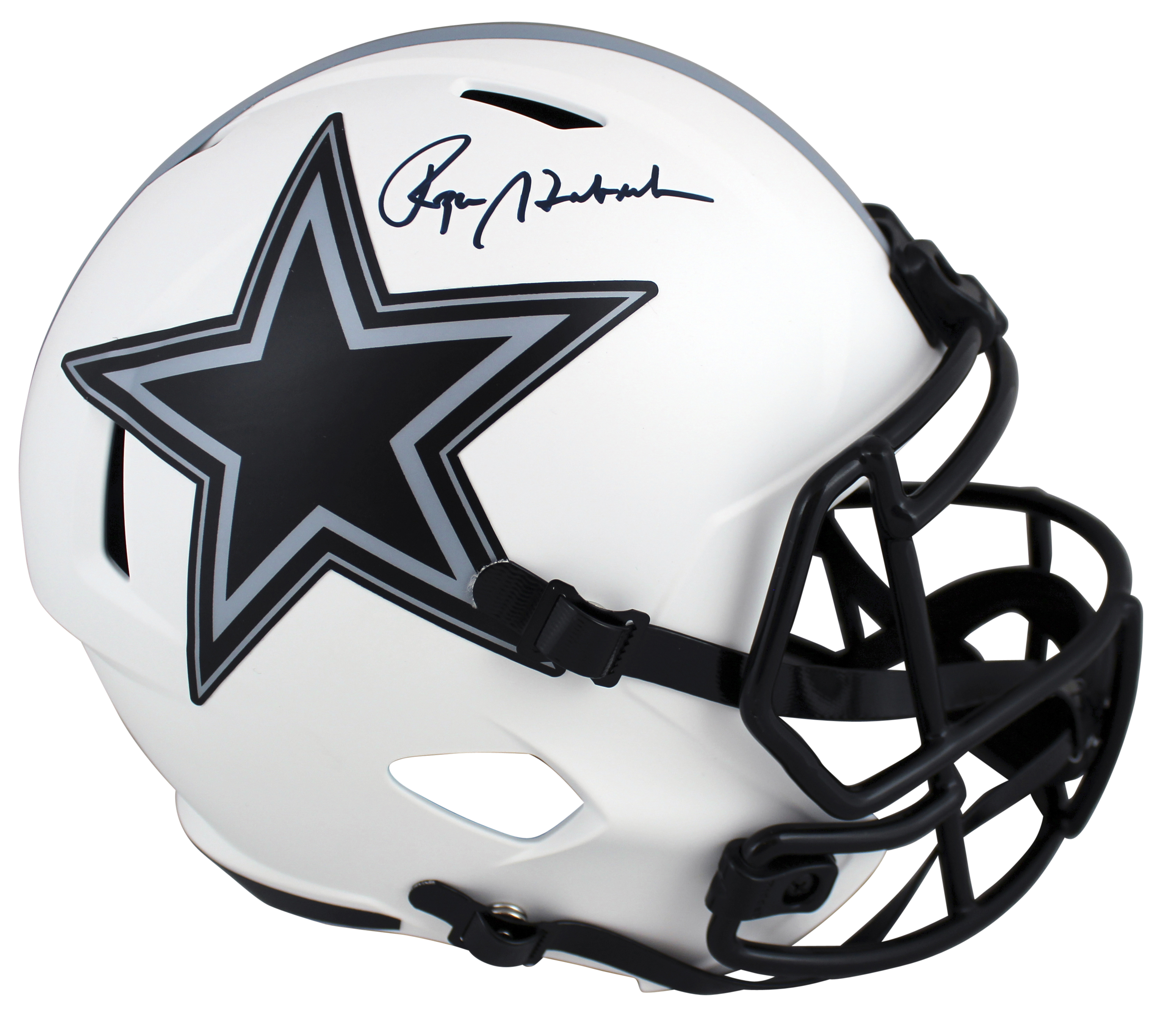 Cowboys Roger Staubach Signed Lunar Full Size Speed Rep Helmet BAS Witnessed