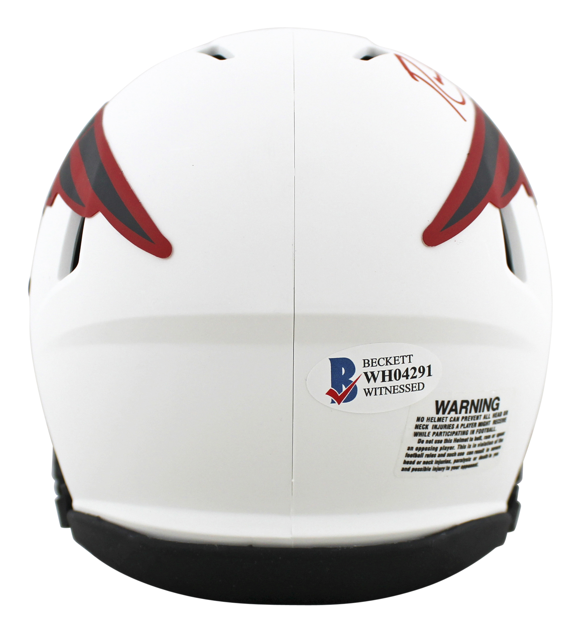 This Autographed Alternate Lunar Speed Mini Helmet has been Personally Signed by Randy Moss of the New England Patriots. This item is 100% Authentic to include a hologram by Beckett Authentication Services. This item will come with the new Beckett Authentication hologram that has a scannable QR code rather than the traditional COA. If you would like to have a COA, you are welcome to reach out to Beckett for a printed certification once you receive your item. This is a BAS Witnessed Protection Program item which means a Beckett Authentication Service representative was present when this item was being signed. This is a stock item. We conducted an autograph signing with Randy Moss and we have several of these available. The one you will receive will be of equal quality to the one pictured. This item can be verified through BAS Witnessed.
