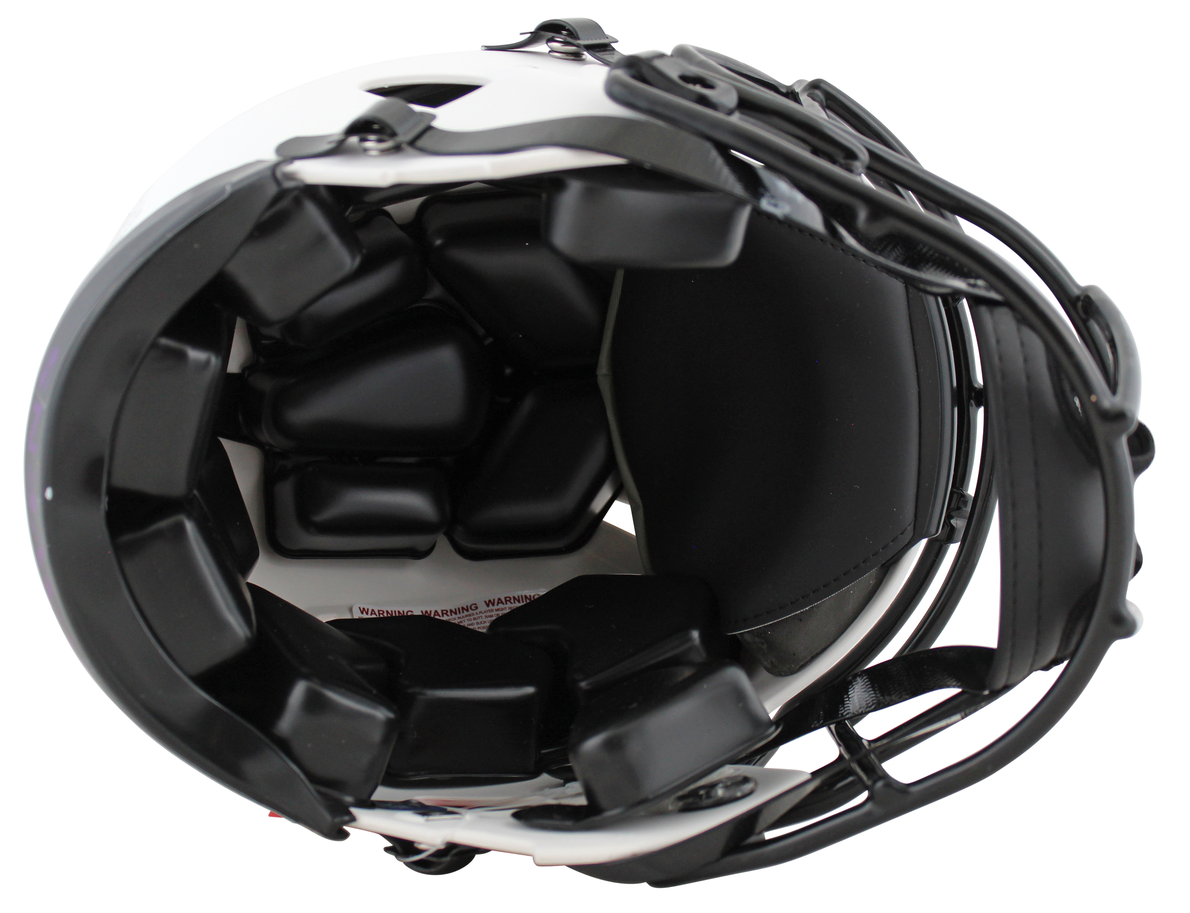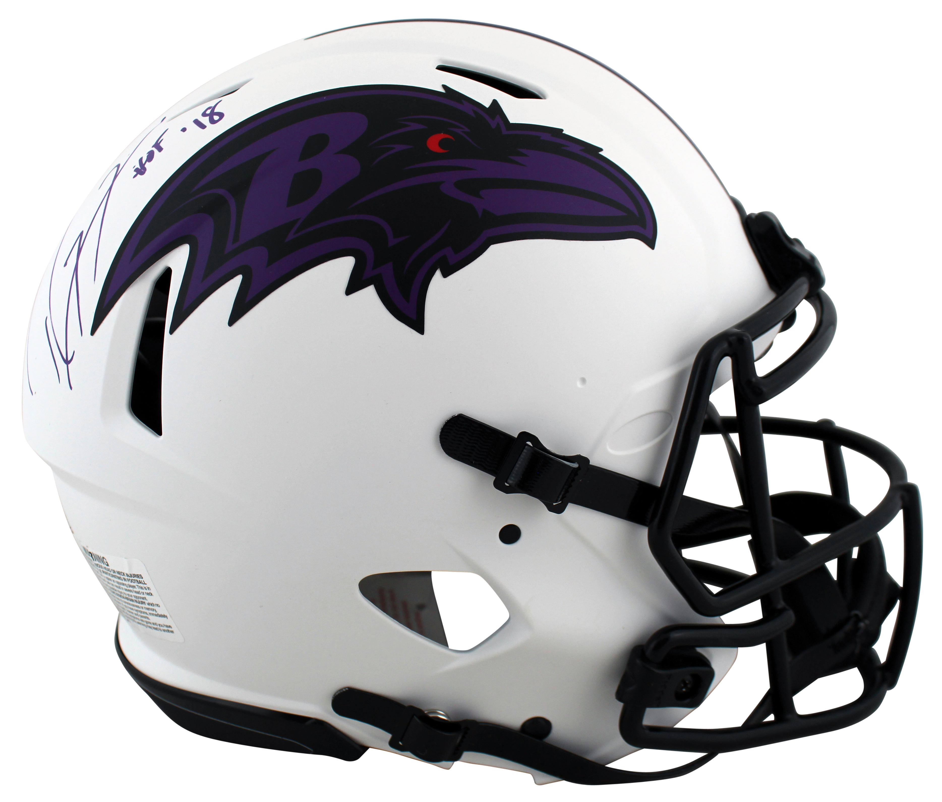 This Autographed Alternate Lunar Riddell Authentic Full Size Speed Proline Helmet with the inscription of "HOF 18" has been Personally Signed by Ray Lewis of the Baltimore Ravens. This item is 100% Authentic to include a hologram by Beckett Authentication Services. This item will come with the new Beckett Authentication hologram that has a scannable QR code rather than the traditional COA. If you would like to have a COA, you are welcome to reach out to Beckett for a printed certification once you receive your item. This is a BAS Witnessed Protection Program item which means a Beckett Authentication Service representative was present when this item was being signed. This is a stock item. We conducted an autograph signing with Ray Lewis and we have several of these available. The one you will receive will be of equal quality to the one pictured. This item can be verified through BAS Witnessed.