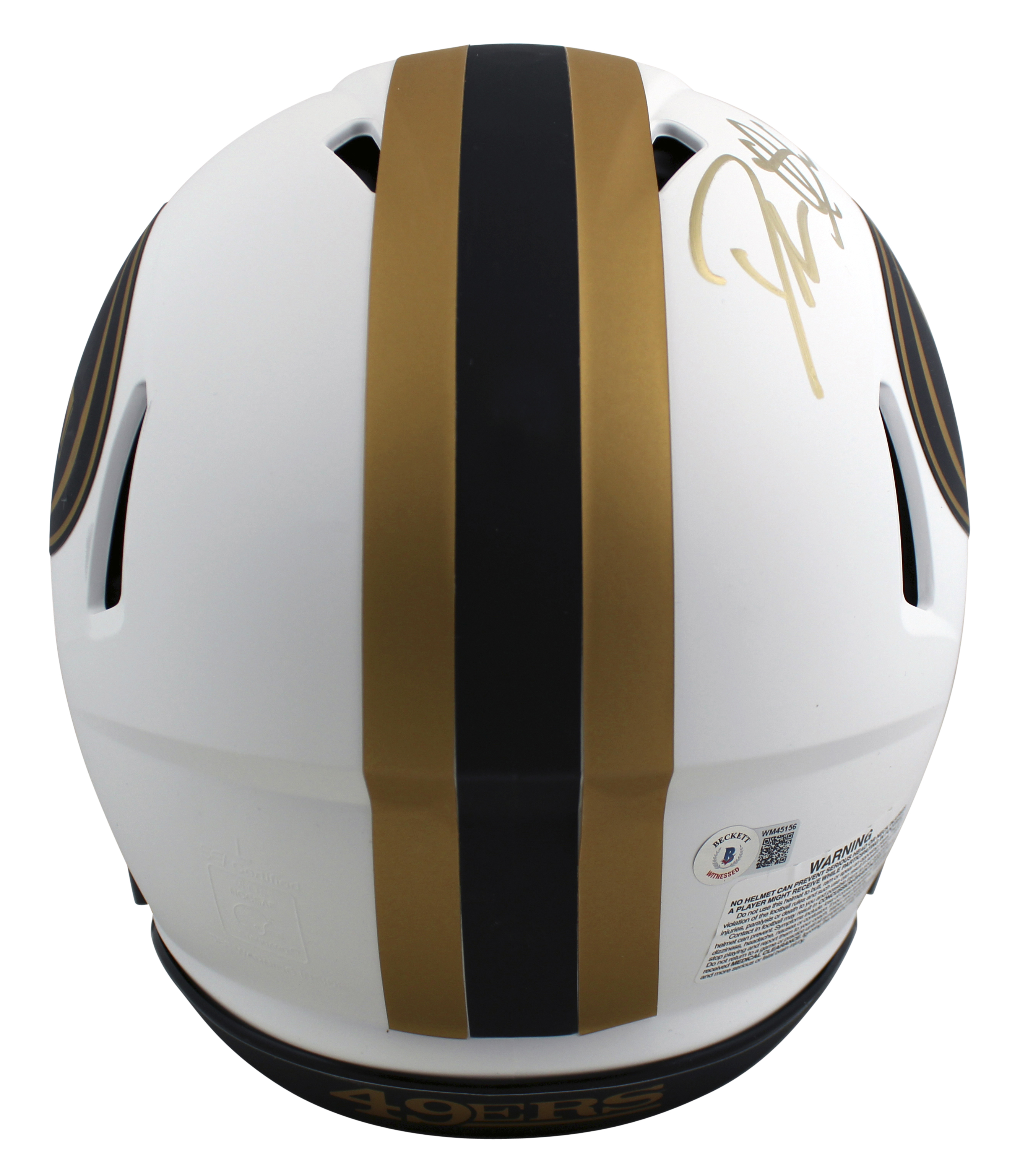 This Autographed Alternate Lunar Riddell Authentic Full Size Speed Proline Helmet has been Personally Signed by Deion Sanders of the San Francisco 49ers. This item is 100% Authentic to include a hologram by Beckett Authentication Services. This item will come with the new Beckett Authentication hologram that has a scannable QR code rather than the traditional COA. If you would like to have a COA, you are welcome to reach out to Beckett for a printed certification once you receive your item. This is a BAS Witnessed Protection Program item which means a Beckett Authentication Service representative was present when this item was being signed. This is a stock item. We conducted an autograph signing with Deion Sanders and we have several of these available. The one you will receive will be of equal quality to the one pictured. This item can be verified through BAS Witnessed.