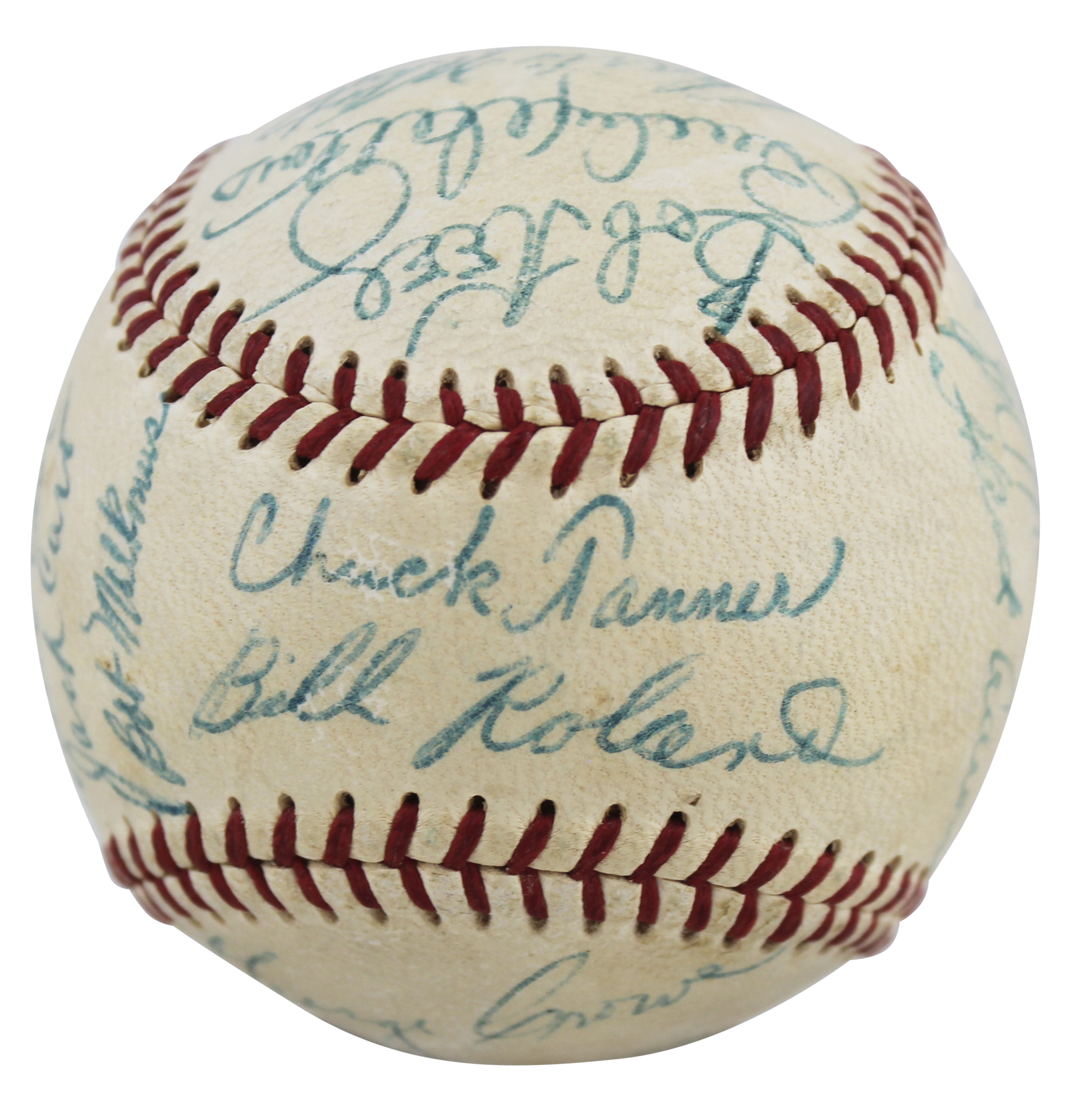 This Autographed Warren Giles Onl Baseball has been Personally Signed by Hank Aaron, Eddie Mathews, Bucky Walters, Del Crandall, Chuck Tanner, Dave Jolly, Bill Bruton, Bobby Malkmus, Danny O'Connell, Andy Pafko, of the Milwaukee Braves. This item is 100% Authentic to include a Certificate of Authenticity (COA) / hologram by JSA. The authenticity can be verified on JSA website.
