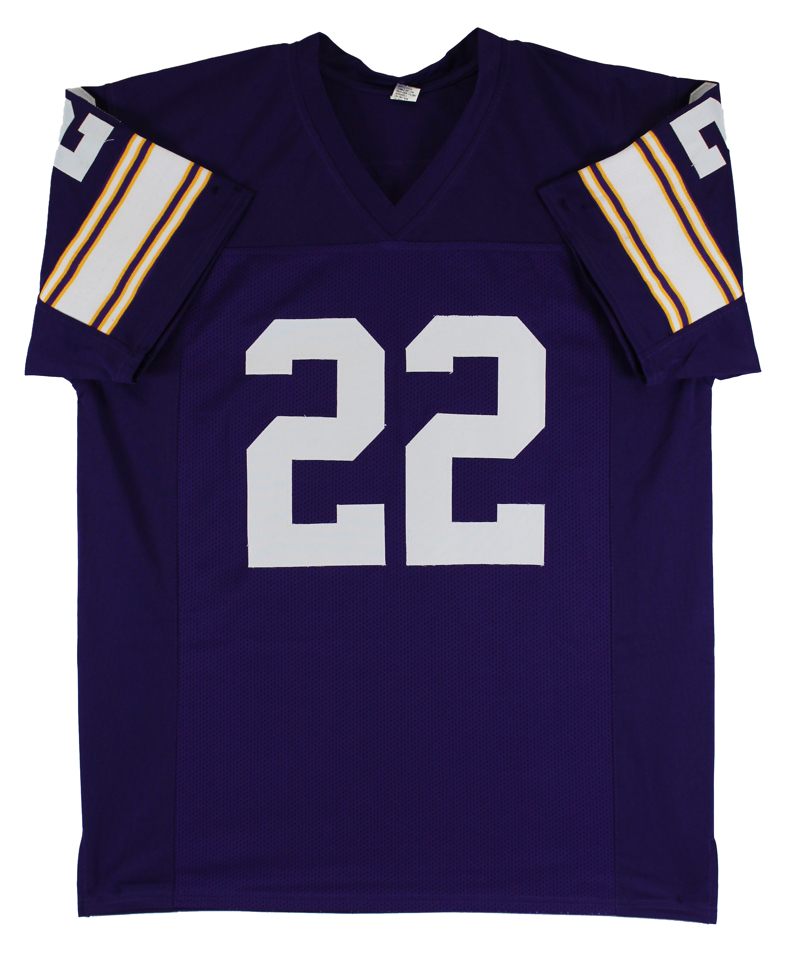 This Autographed Purple Pro Style Jersey with the inscription of "HOF 98" has been Personally Signed by Paul Krause of the Minnesota Vikings. This item is 100% Authentic to include a hologram by Beckett Authentication Services. This item will come with the new Beckett Authentication hologram that has a scannable QR code rather than the traditional COA. If you would like to have a COA, you are welcome to reach out to Beckett for a printed certification once you receive your item. This is a BAS Witnessed Protection Program item which means a Beckett Authentication Service representative was present when this item was being signed. This is a stock item. We conducted an autograph signing with Paul Krause and we have several of these available. The one you will receive will be of equal quality to the one pictured. This item can be verified through BAS Witnessed. This is a X-Large sized, non-branded, custom-stitched Jersey.