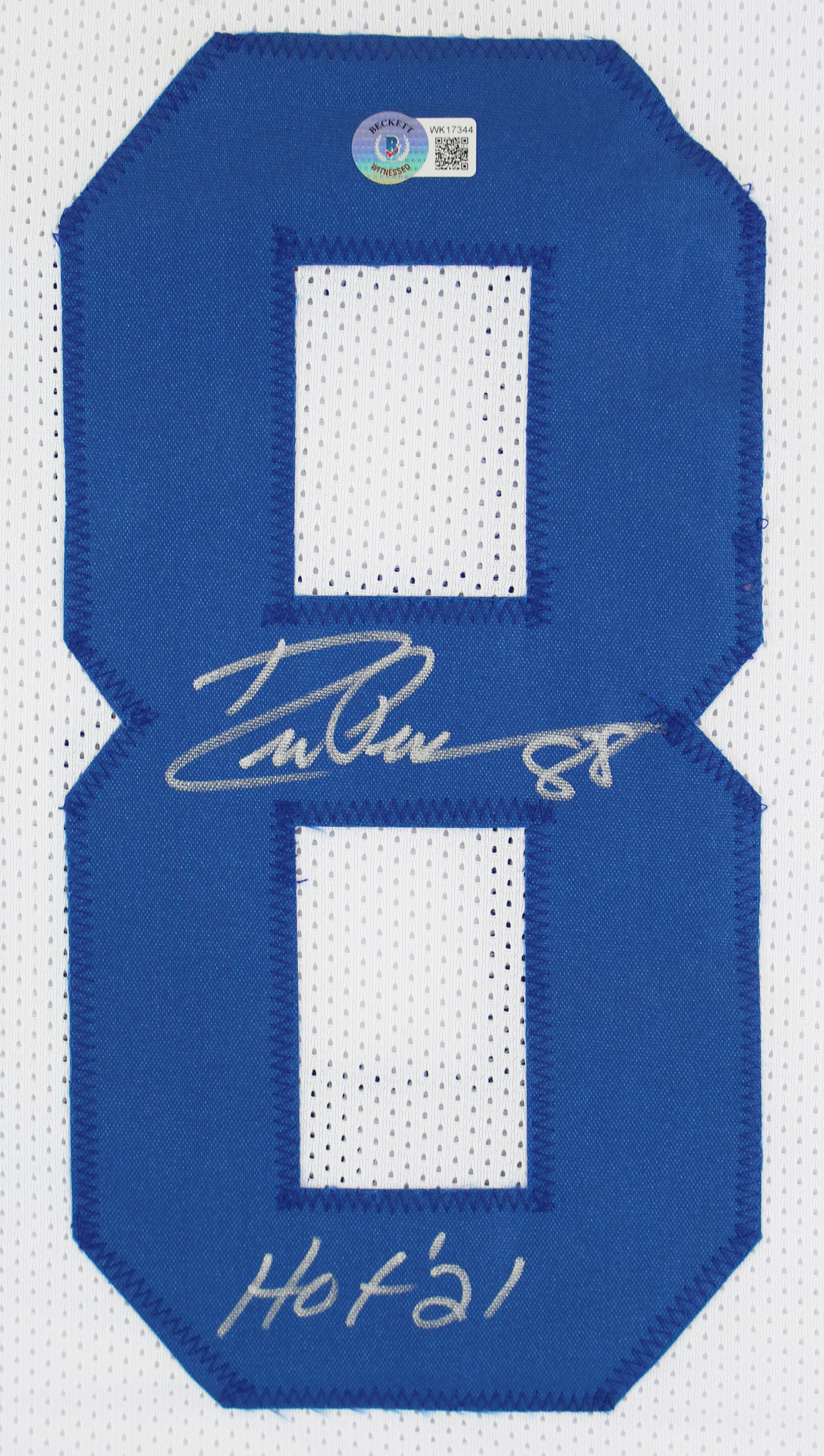 This Autographed White Pro Style Framed Jersey with the inscription of "HOF 21" has been Personally Signed by Drew Pearson of the Dallas Cowboys. This item is 100% Authentic to include a hologram by Beckett Authentication Services. This item will come with the new Beckett Authentication hologram that has a scannable QR code rather than the traditional COA. If you would like to have a COA, you are welcome to reach out to Beckett for a printed certification once you receive your item. This is a BAS Witnessed Protection Program item which means a Beckett Authentication Service representative was present when this item was being signed. This is a stock item. We conducted an autograph signing with Drew Pearson and we have several of these available. The one you will receive will be of equal quality to the one pictured. This item can be verified through BAS Witnessed. This item has been professionally framed to overall dimensions of approximately 32 x 37 inches. This is a X-Large sized, non-branded, custom-stitched Framed Jersey. This jersey will be framed to order, it will take 3-4 days from purchase date for it to ship.