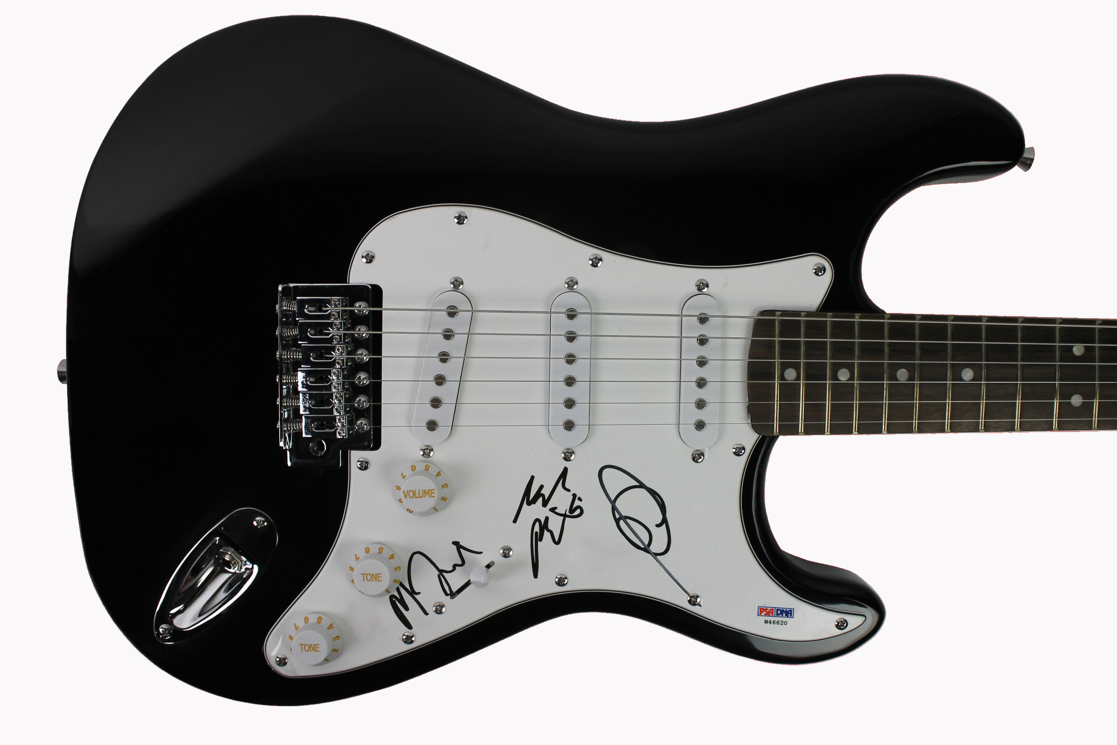 This Autographed Electric Guitar has been Personally Signed by Mark Foster, Pontius & Cubbie Fink of Foster The People. This item is 100% Authentic and comes with a PSA/DNA Certification Card and a matching numbered Hologram. The authenticity can be verified on Professional Sports Authenticator website.