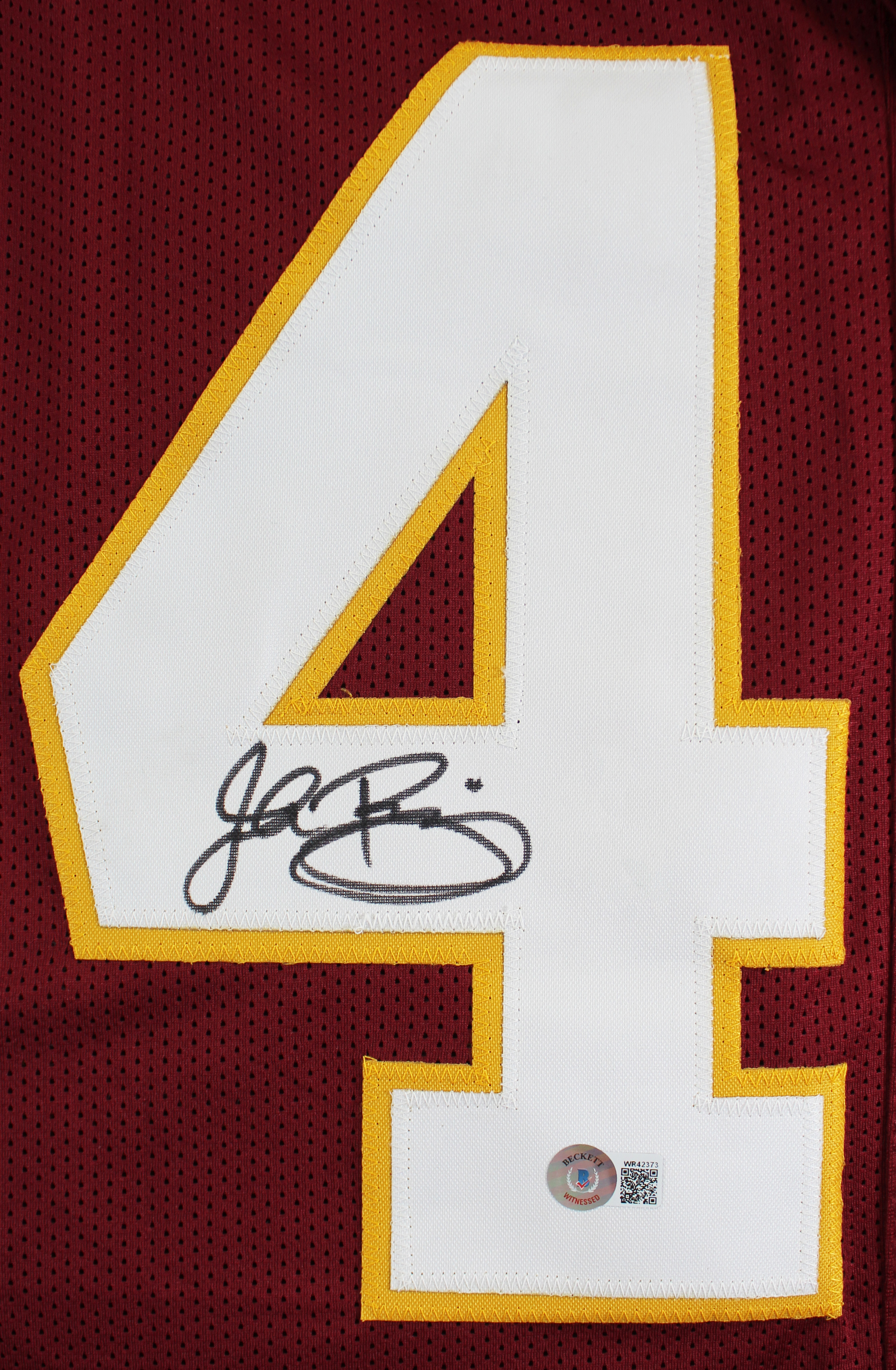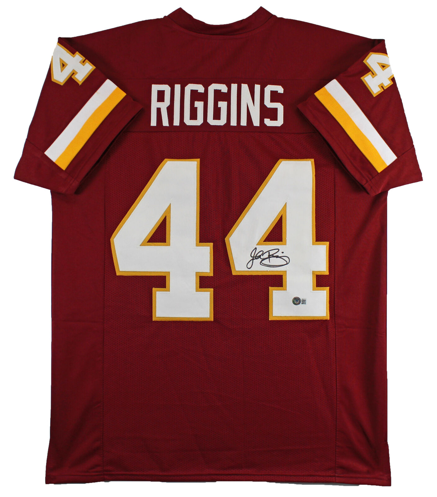 This Autographed Maroon Pro Style Jersey has been Personally Signed by John Riggins of the Washington Redskins. This item is 100% Authentic to include a hologram by Beckett Authentication Services. This item will come with the new Beckett Authentication hologram that has a scannable QR code rather than the traditional COA. If you would like to have a COA, you are welcome to reach out to Beckett for a printed certification once you receive your item. This is a BAS Witnessed Protection Program item which means a Beckett Authentication Service representative was present when this item was being signed. We conducted an autograph signing with John Riggins where multiples of the same item were signed. While the photographs are representative of this item, the size, placement and strength of the signature may vary. Each item is hand signed, therefore, each autograph is unique. This item can be verified through BAS Witnessed. This is a X-Large sized, non-branded, custom-stitched Jersey.