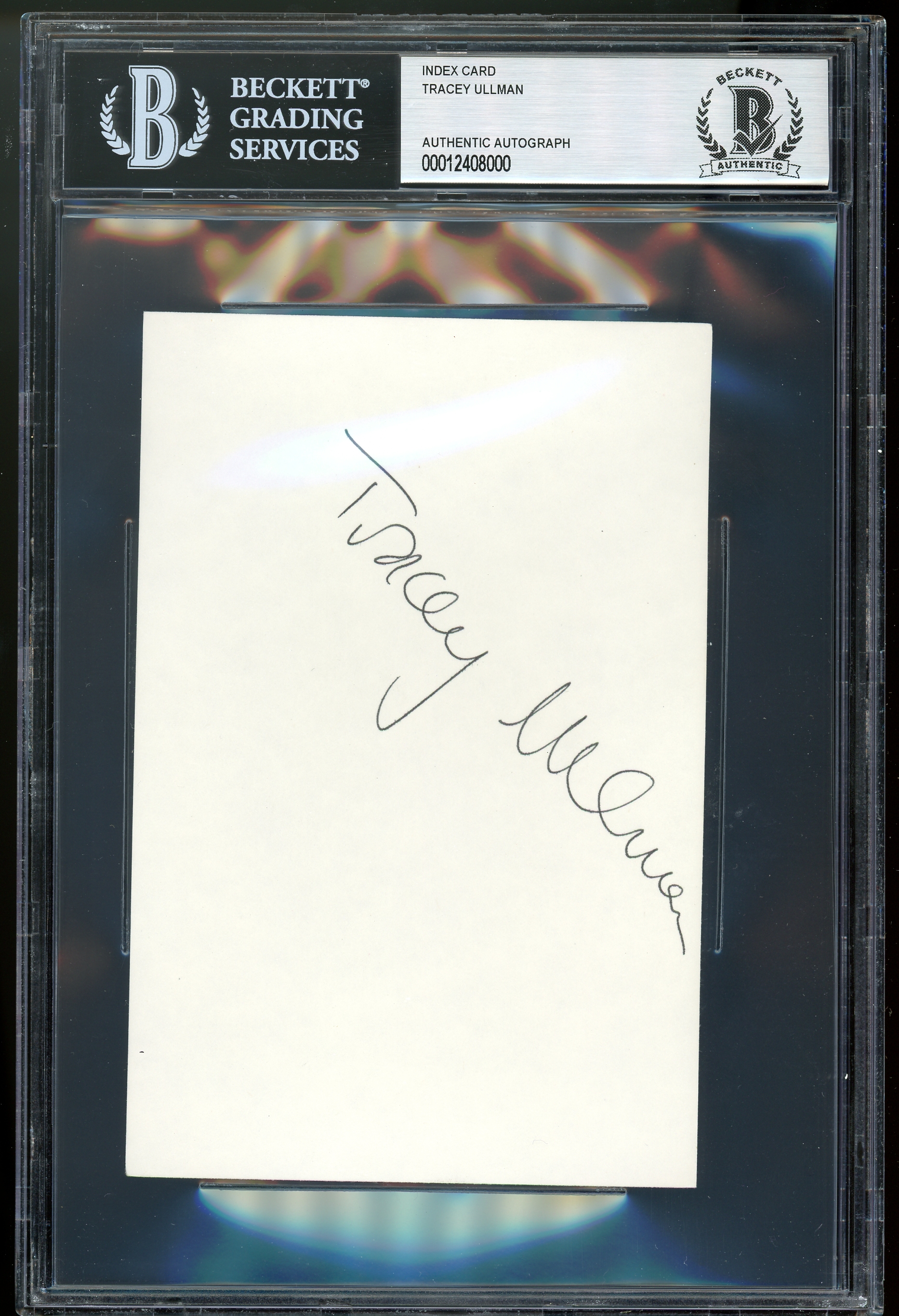 This Autographed 4x6 Index Card has been Personally Signed by Tracy Ullman of Into the Woods. This item is 100% Authentic, it comes slabbed and authenticated by Beckett Authentication Services. The authenticity can be verified on Beckett Authentication Services website.