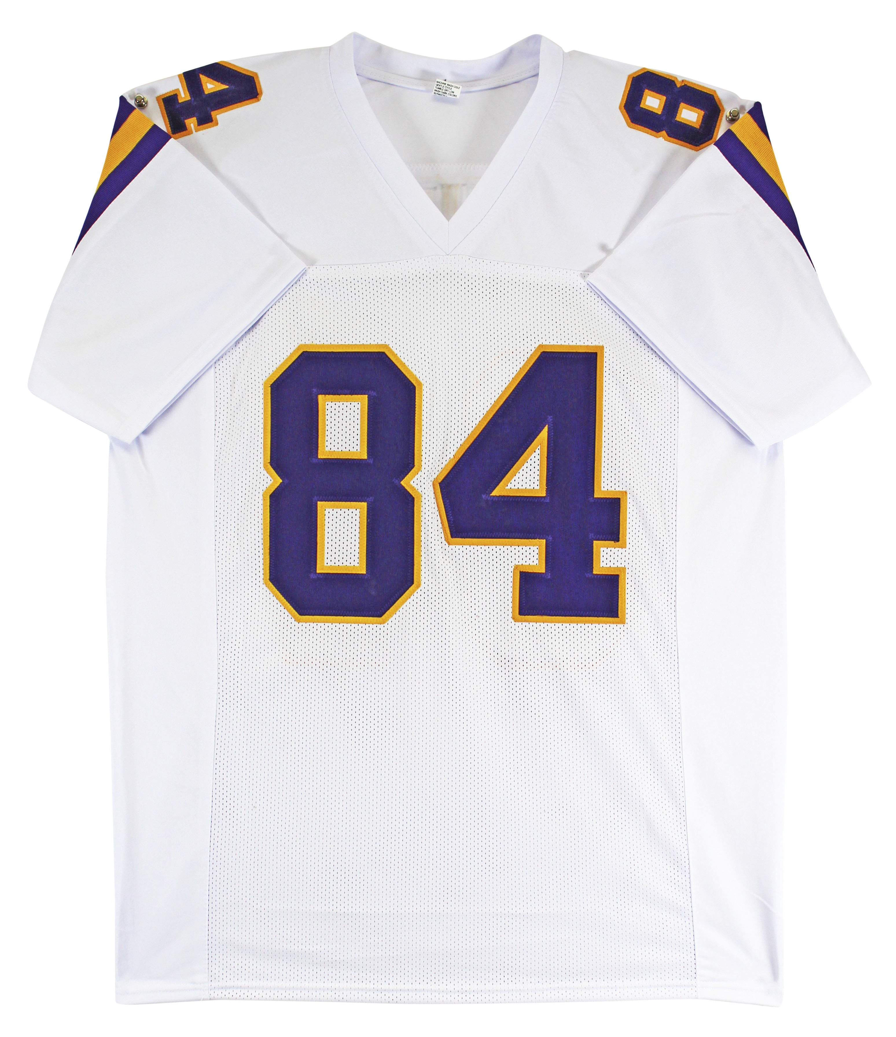 This Autographed White Pro Style Jersey has been Personally Signed by Randy Moss of the Minnesota Vikings. This item is 100% Authentic to include a Certificate of Authenticity (COA) / hologram by Beckett Authentication Services. This is a BAS Witnessed Protection Program item which means a Beckett Authentication Service representative was present when this item was being signed. This is a stock item. We conducted an autograph signing with Randy Moss and we have several of these available. The one you will receive will be of equal quality to the one pictured. This item can be verified through BAS Witnessed. This is a X-Large sized, non-branded, custom-stitched Jersey.