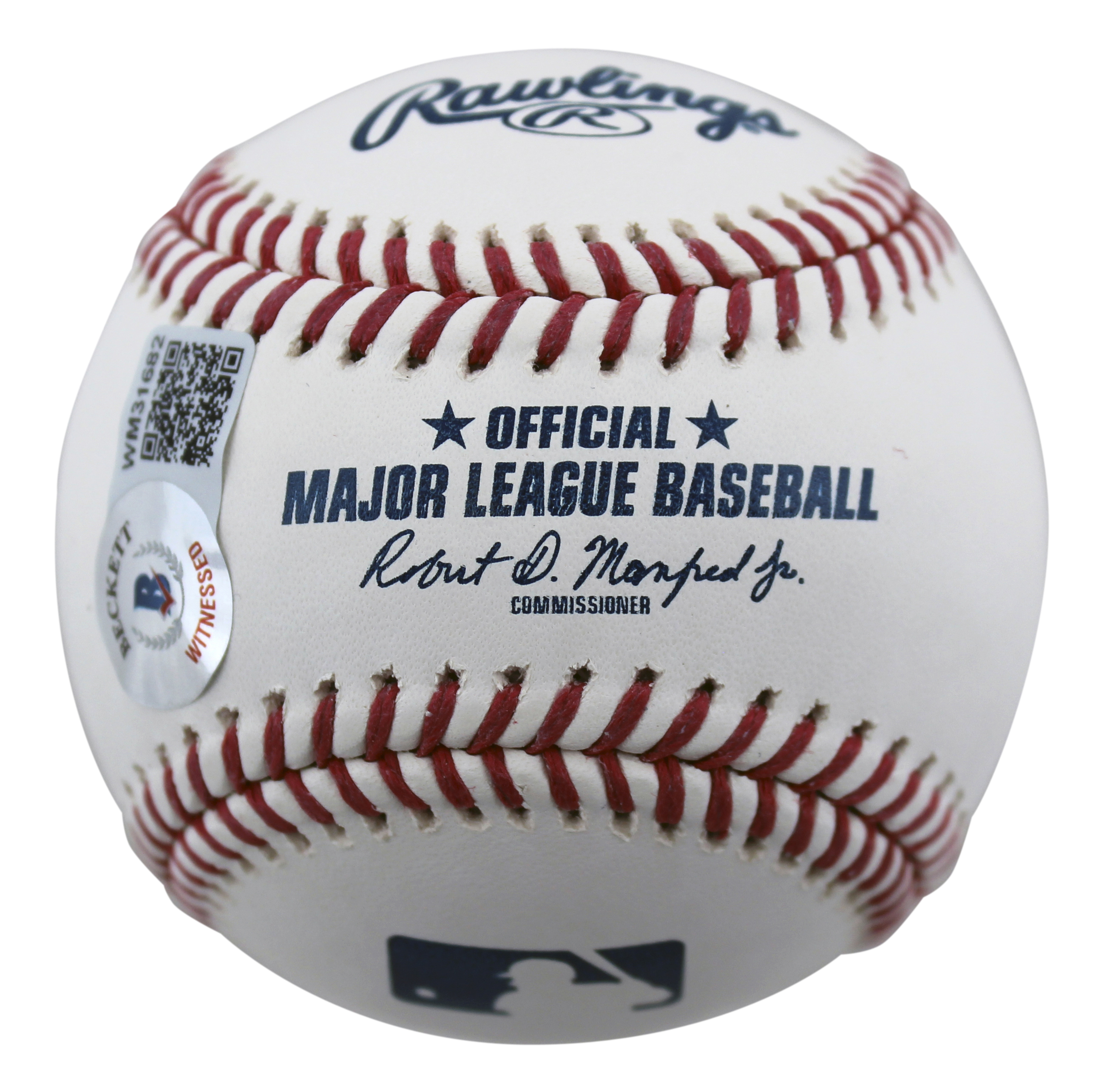 This Autographed Robert Manfred Oml Baseball with the inscription of "2020 AL Cy Young" has been Personally Signed by Shane Bieber of the Cleveland Indians. This item is 100% Authentic to include a hologram by Beckett Authentication Services. This item will come with the new Beckett Authentication hologram that has a scannable QR code rather than the traditional COA. If you would like to have a COA, you are welcome to reach out to Beckett for a printed certification once you receive your item. This is a BAS Witnessed Protection Program item which means a Beckett Authentication Service representative was present when this item was being signed. This is a stock item. We conducted an autograph signing with Shane Bieber and we have several of these available. The one you will receive will be of equal quality to the one pictured. This item can be verified through BAS Witnessed.