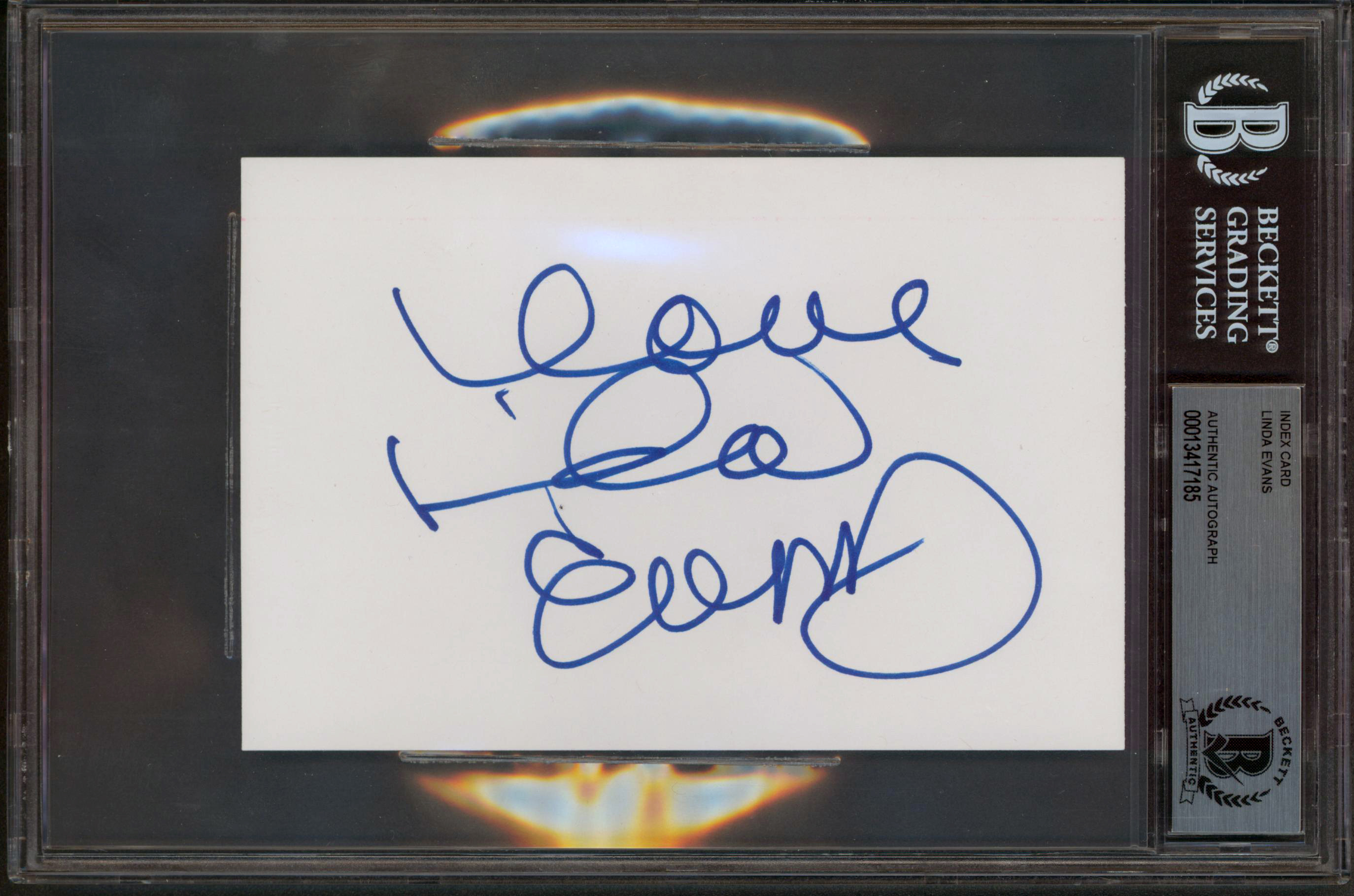 This Autographed 4x6 Index Card has been Personally Signed by Linda Evans of The Big Valley. This item is 100% Authentic, it comes slabbed and authenticated by Beckett Authentication Services. The authenticity can be verified on Beckett Authentication Services website.