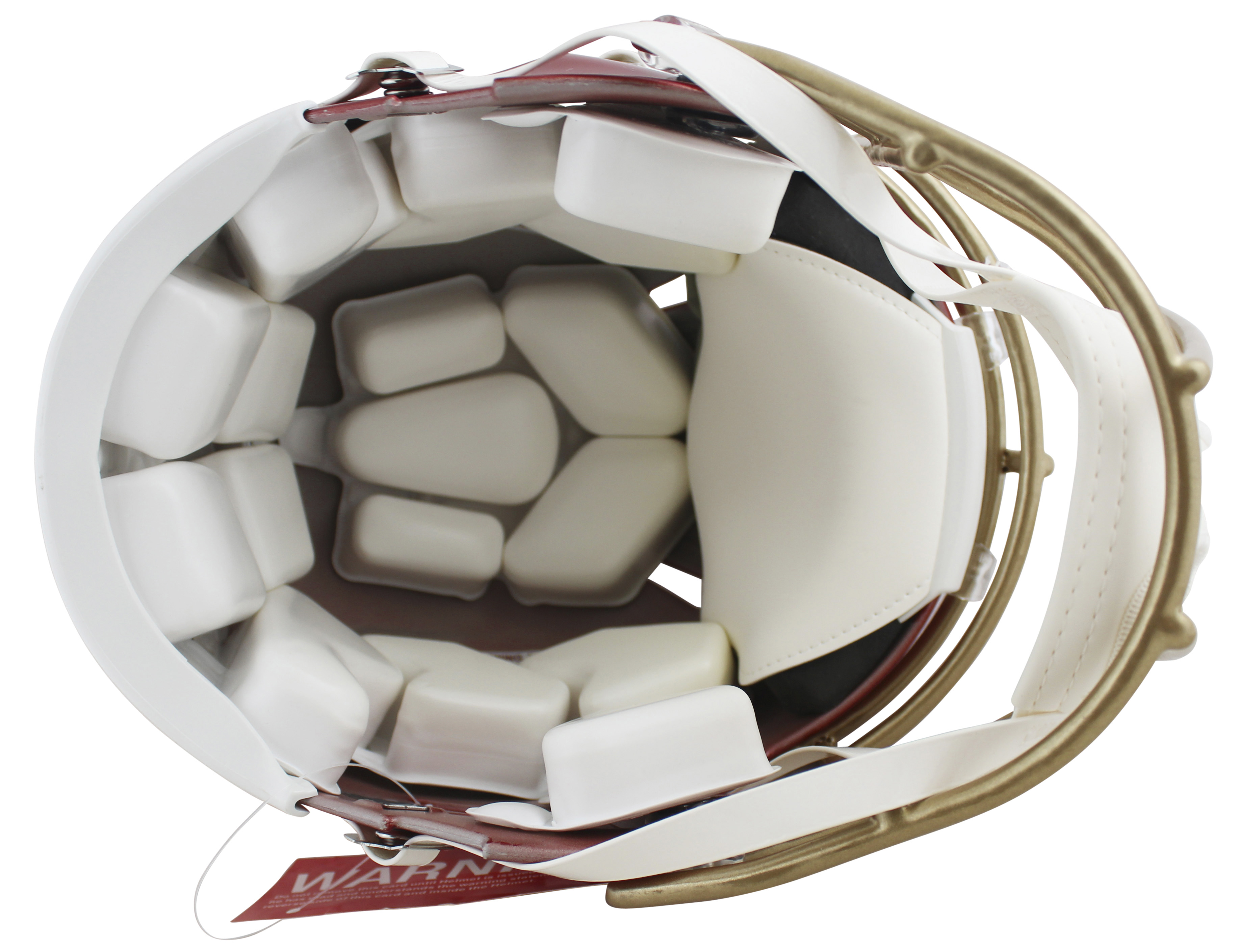 This Autographed Alternate Flash Riddell Authentic Full Size Speed Proline Helmet has been Personally Signed by George Kittle of the San Francisco 49ers. This item is 100% Authentic to include a hologram by Beckett Authentication Services. This item will come with the new Beckett Authentication hologram that has a scannable QR code rather than the traditional COA. If you would like to have a COA, you are welcome to reach out to Beckett for a printed certification once you receive your item. This is a BAS Witnessed Protection Program item which means a Beckett Authentication Service representative was present when this item was being signed. We conducted an autograph signing with George Kittle where multiples of the same item were signed. While the photographs are representative of this item, the size, placement and strength of the signature may vary. Each item is hand signed, therefore, each autograph is unique. This item can be verified through BAS Witnessed.
