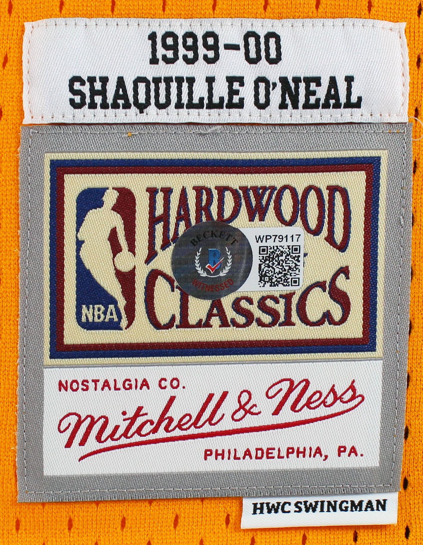 This Autographed Yellow Mitchell & Ness 1999-2000 Throwback Hardwood Classics Swingman Jersey has been Personally Signed by Shaquille O'Neal of the Los Angeles Lakers. This item is 100% Authentic to include a hologram by Beckett Authentication Services. This item will come with the new Beckett Authentication hologram that has a scannable QR code rather than the traditional COA. If you would like to have a COA, you are welcome to reach out to Beckett for a printed certification once you receive your item. This is a BAS Witnessed Protection Program item which means a Beckett Authentication Service representative was present when this item was being signed. This is a stock item. We conducted an autograph signing with Shaquille O'Neal and we have several of these available. The one you will receive will be of equal quality to the one pictured. This item can be verified through BAS Witnessed. This is a X-Large sized Jersey.