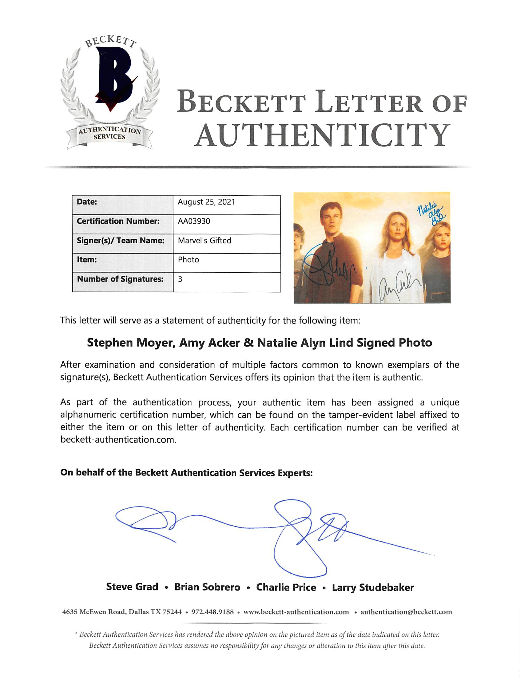 The Gifted (3) Moyer, Acker & Lind Authentic Signed 11x14 Photo BAS #AA03930
