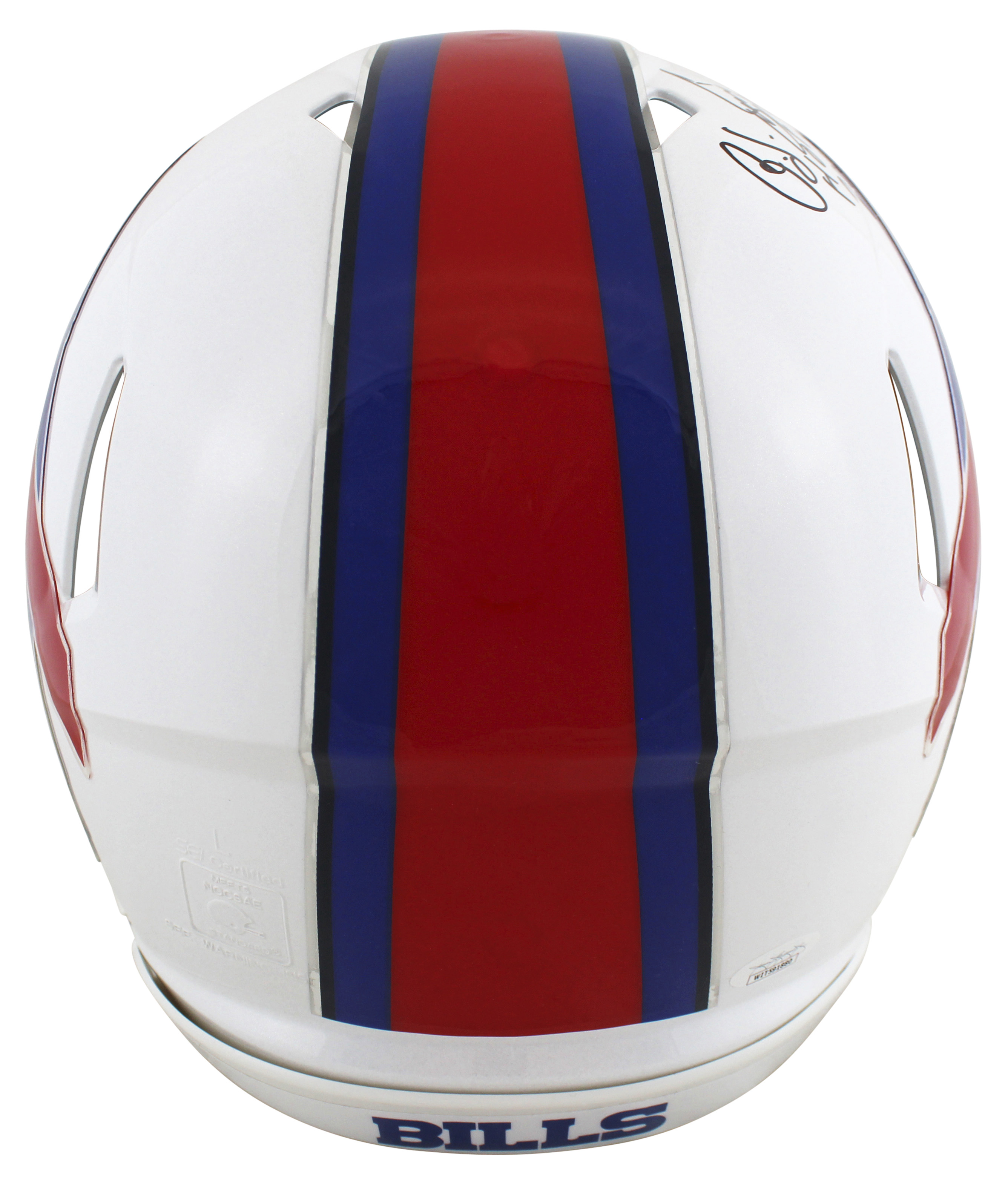 This Autographed Authentic Full Size Speed Proline Helmet with the inscription of "HOF 85, 2003 Yds in 1973" has been Personally Signed by O.J. Simpson of the Buffalo Bills. This item is 100% Authentic to include a Certificate of Authenticity (COA) / hologram by JSA Witness. This is a JSA Witnessed Protection Program item which means a JSA representative was present when this item was being signed. We conducted an autograph signing with O.J. Simpson where multiples of the same item were signed. While the photographs are representative of this item, the size, placement and strength of the signature may vary. Each item is hand signed, therefore, each autograph is unique. This item can be verified through JSA Witness.