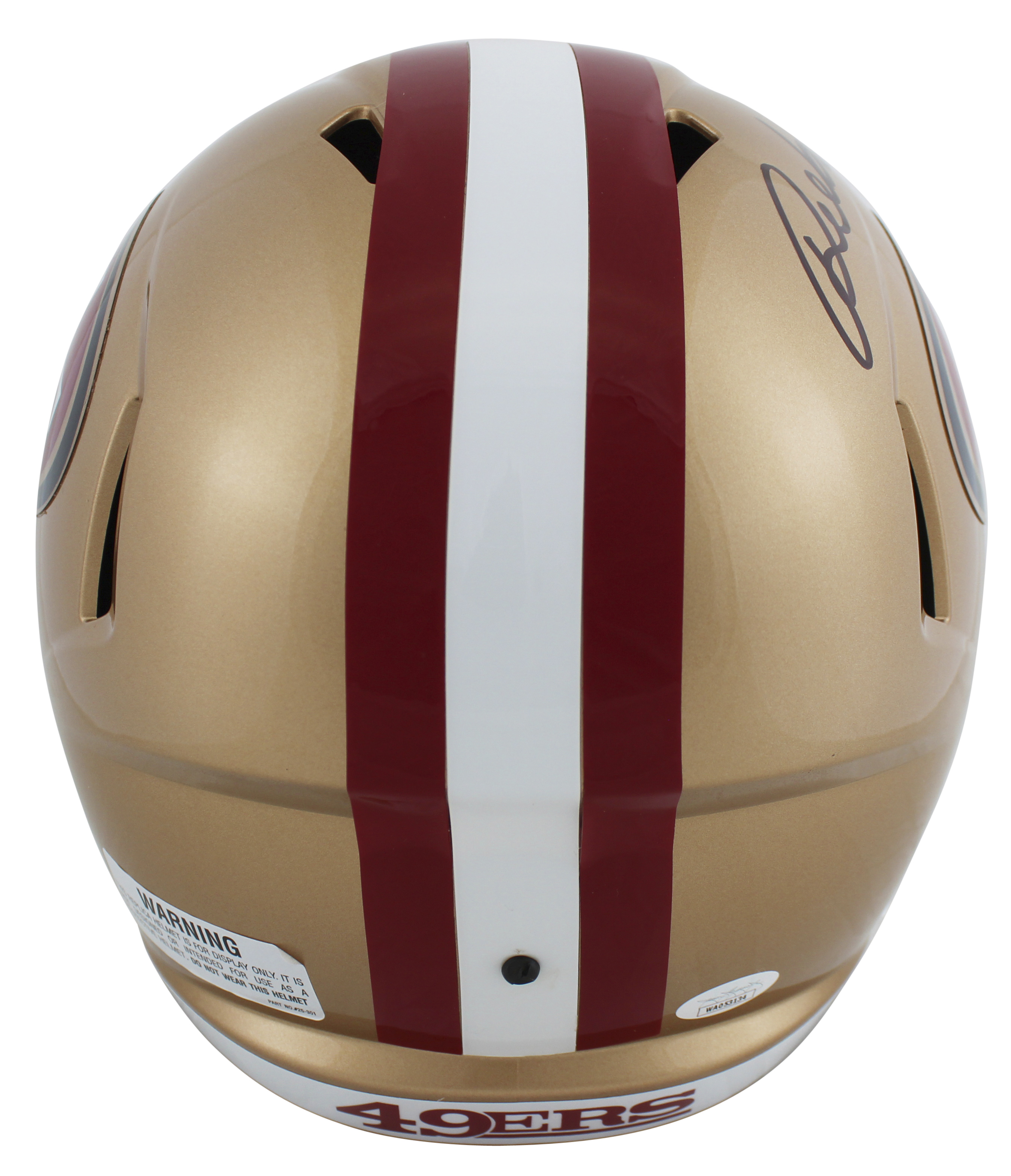 This Autographed Full Size Speed Rep Helmet has been Personally Signed by Deebo Samuel of the San Francisco 49ers. This item is 100% Authentic to include a Certificate of Authenticity (COA) / hologram by JSA. We conducted an autograph signing with Deebo Samuel where multiples of the same item were signed. While the photographs are representative of this item, the size, placement and strength of the signature may vary. Each item is hand signed, therefore, each autograph is unique. This item can be verified through JSA.