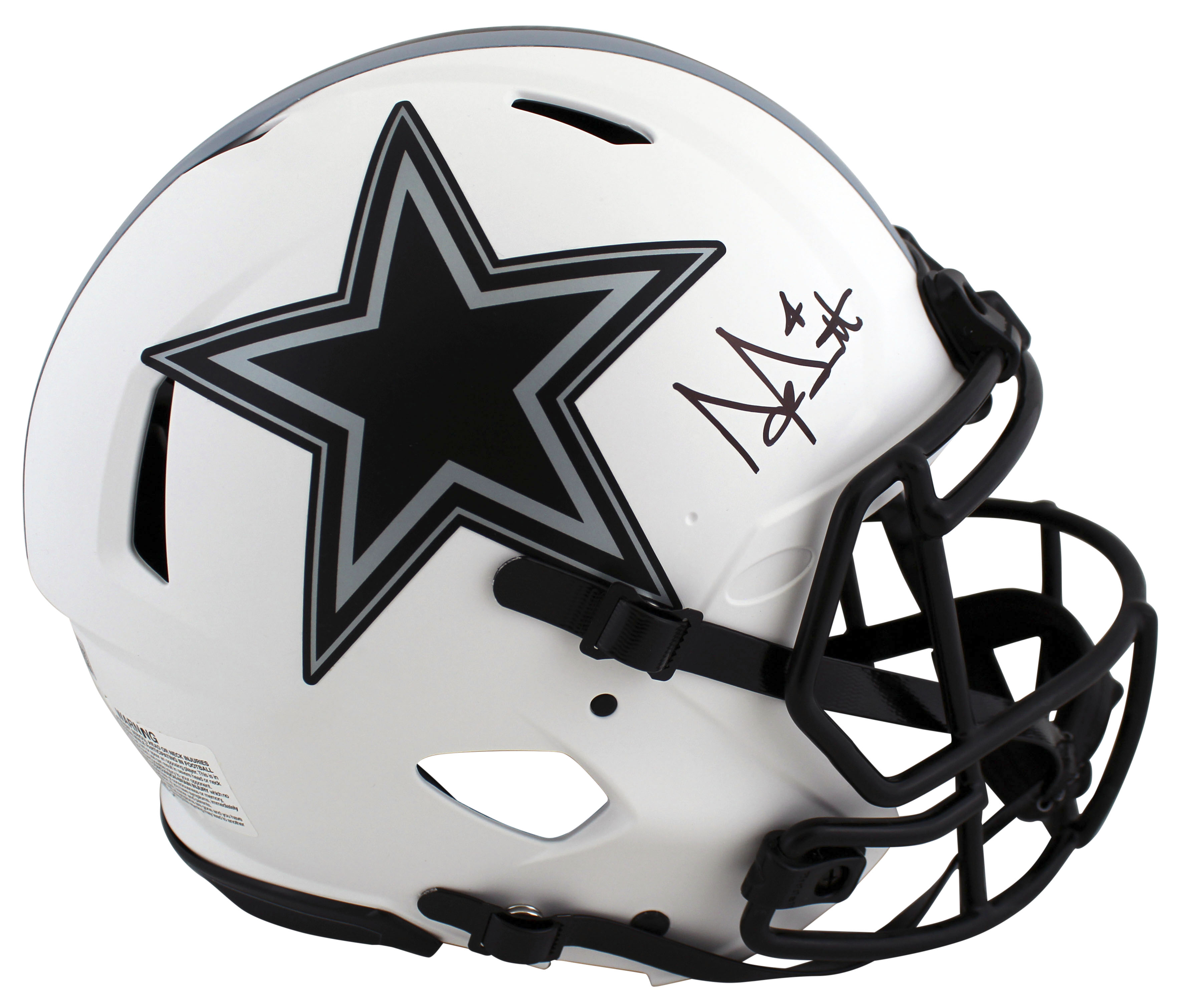 Cowboys Dak Prescott Signed Lunar F/S Speed Proline Helmet w/ Black Sig BAS Wit