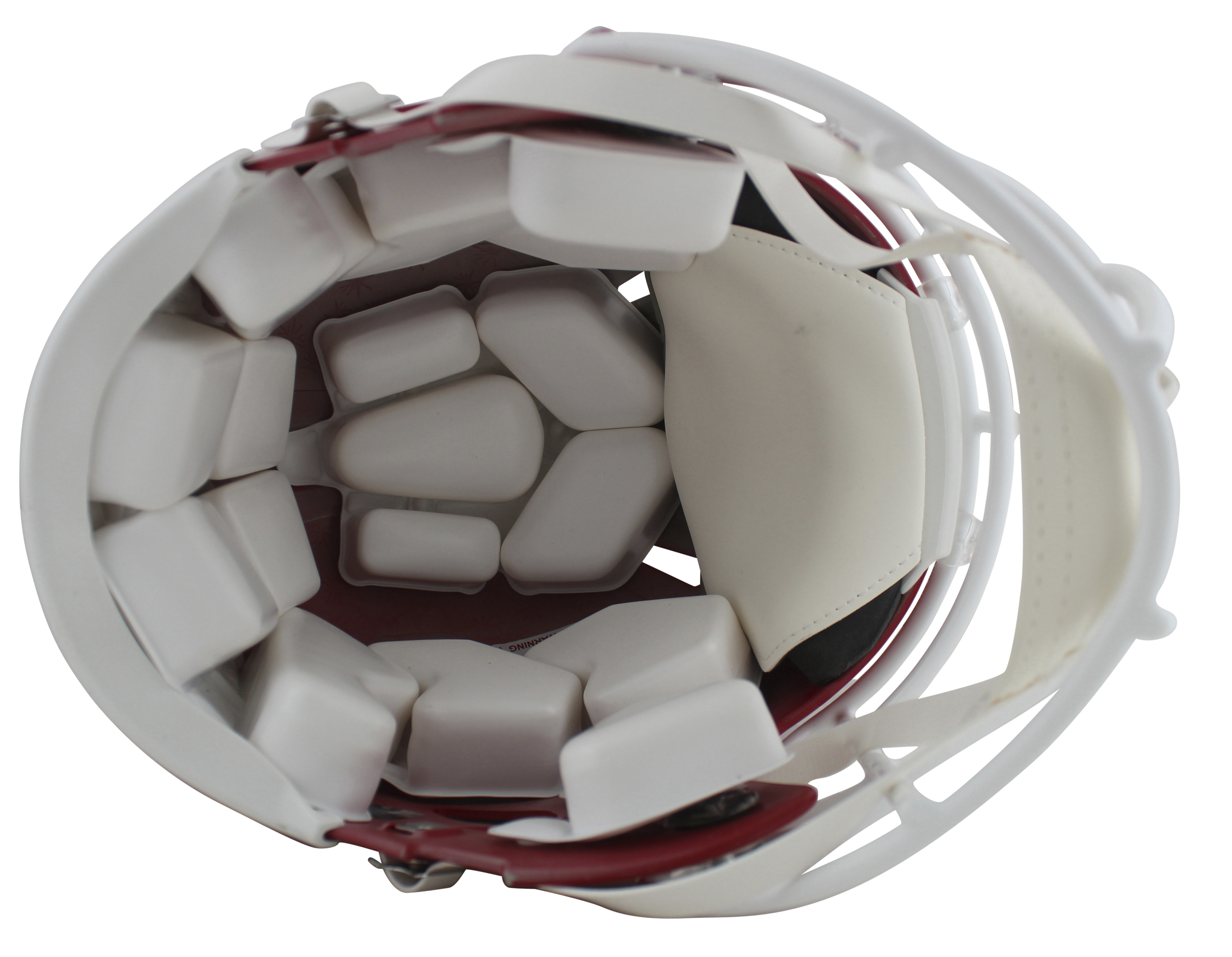 This Autographed 1987-01 Red Throwback Authentic Full Size Speed Proline Helmet with the inscription of "HOF 2002" has been Personally Signed by Jim Kelly of the Buffalo Bills. This item is 100% Authentic to include a Certificate of Authenticity (COA) / hologram by Beckett Authentication Services. This is a BAS Witnessed Protection Program item which means a Beckett Authentication Service representative was present when this item was being signed. We conducted an autograph signing with Jim Kelly where multiples of the same item were signed. While the photographs are representative of this item, the size, placement and strength of the signature may vary. Each item is hand signed, therefore, each autograph is unique. This item can be verified through BAS Witnessed.