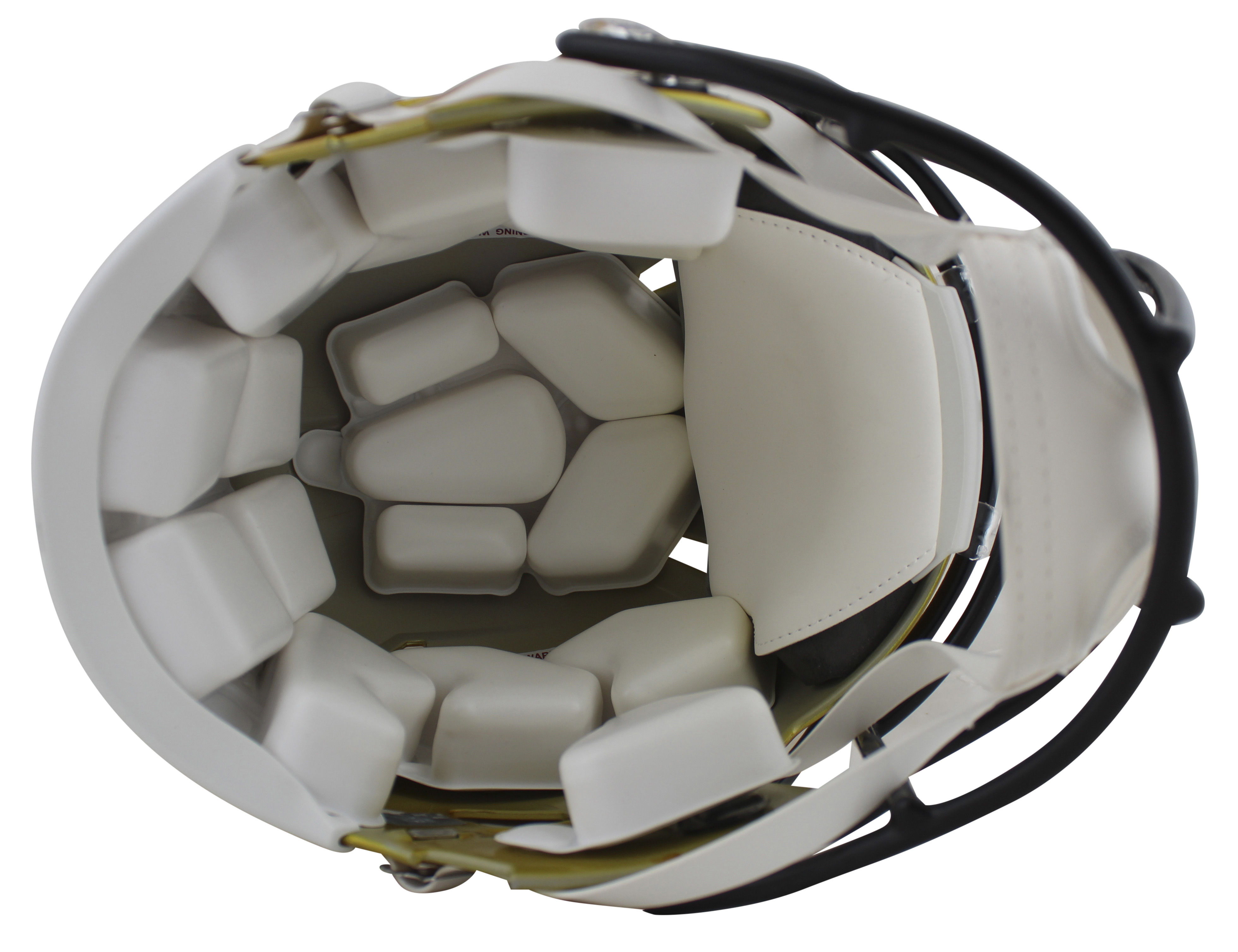 This Autographed Alternate Flash Riddell Authentic Full Size Speed Proline Helmet has been Personally Signed by Troy Polamalu of the Pittsburgh Steelers. This item is 100% Authentic to include a hologram by Beckett Authentication Services. This item may come with the new Beckett Authentication hologram that has a scannable QR code rather than the traditional COA. If you would like to have a COA, you are welcome to reach out to Beckett for a printed certification once you receive your item. This is a BAS Witnessed Protection Program item which means a Beckett Authentication Service representative was present when this item was being signed. We conducted an autograph signing with Troy Polamalu where multiples of the same item were signed. While the photographs are representative of this item, the size, placement and strength of the signature may vary. Each item is hand signed, therefore, each autograph is unique. This item can be verified through BAS Witnessed.
