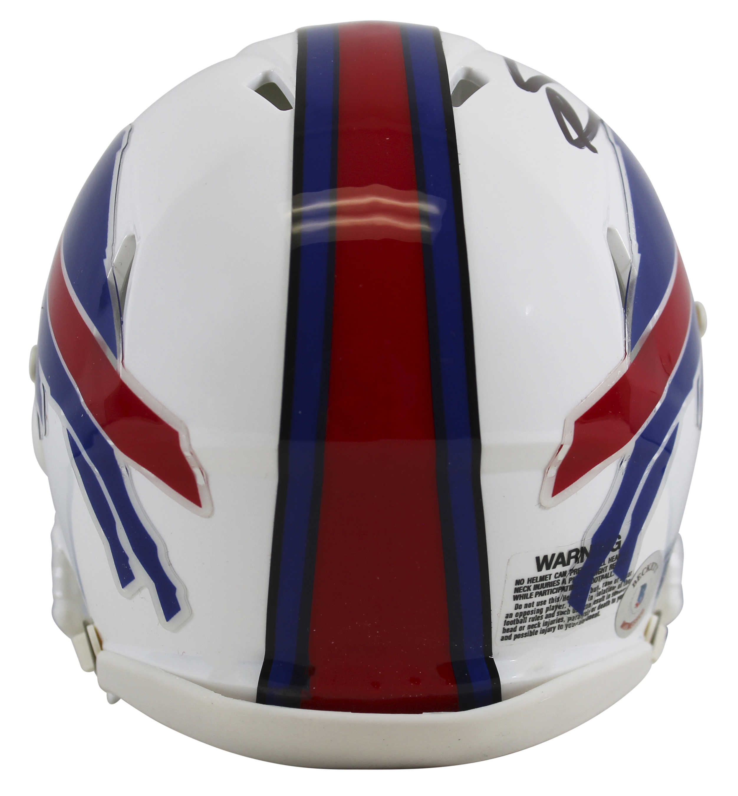 This Autographed w/ White Facemask White Speed Mini Helmet has been Personally Signed by Stefon Diggs of the Buffalo Bills. This item is 100% Authentic to include a hologram by Beckett Authentication Services. This item may come with the new Beckett Authentication hologram that has a scannable QR code rather than the traditional COA. If you would like to have a COA, you are welcome to reach out to Beckett for a printed certification once you receive your item. This is a BAS Witnessed Protection Program item which means a Beckett Authentication Service representative was present when this item was being signed. We conducted an autograph signing with Stefon Diggs where multiples of the same item were signed. While the photographs are representative of this item, the size, placement and strength of the signature may vary. Each item is hand signed, therefore, each autograph is unique. This item can be verified through BAS Witnessed.