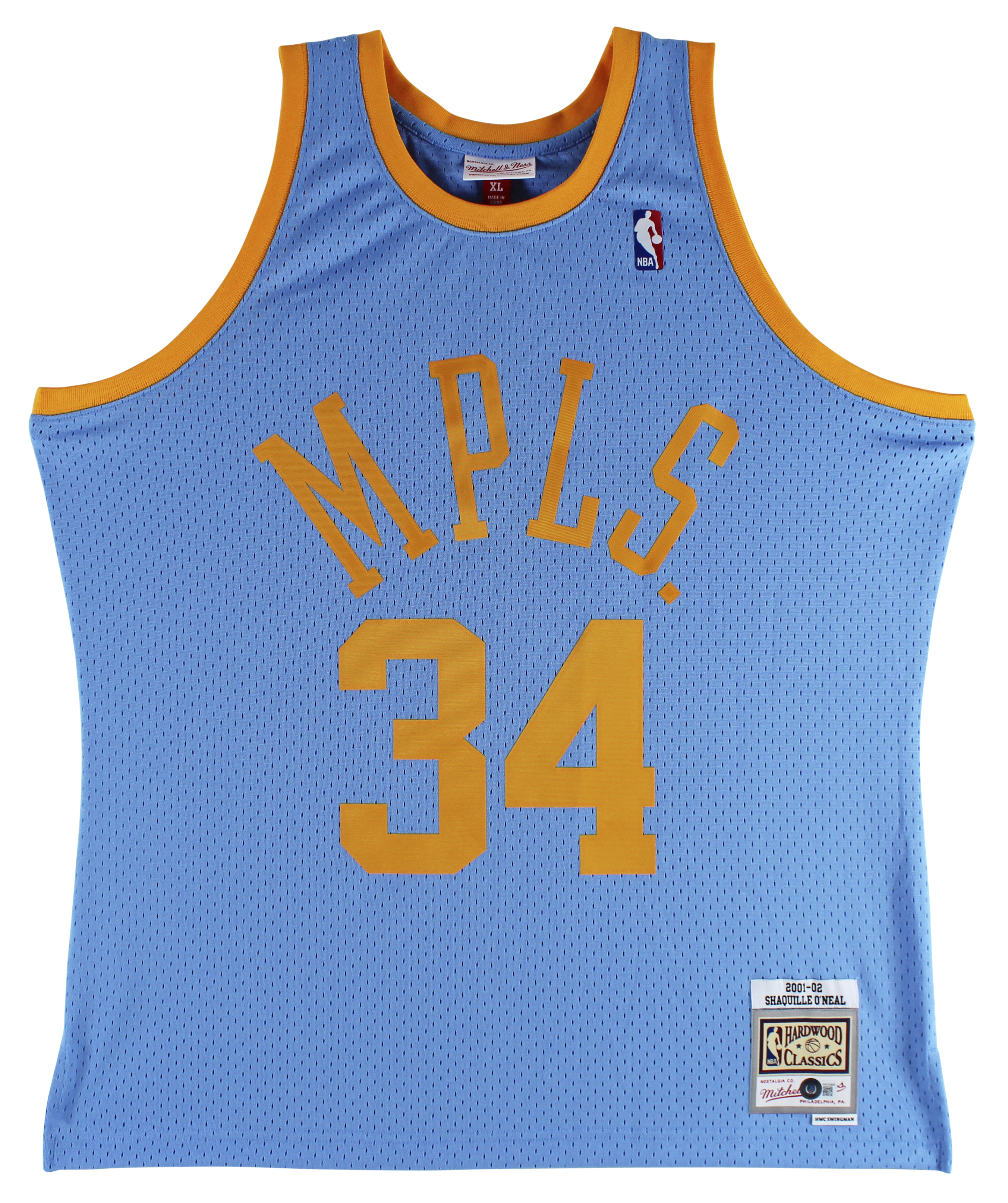 This Autographed Blue Throwback Mitchell & Ness Hardwood Classics Swingman Jersey has been Personally Signed by Shaquille O'Neal of the Los Angeles Lakers. This item is 100% Authentic to include a hologram by Beckett Authentication Services. This item may come with the new Beckett Authentication hologram that has a scannable QR code rather than the traditional COA. If you would like to have a COA, you are welcome to reach out to Beckett for a printed certification once you receive your item. This is a BAS Witnessed Protection Program item which means a Beckett Authentication Service representative was present when this item was being signed. We conducted an autograph signing with Shaquille O'Neal where multiples of the same item were signed. While the photographs are representative of this item, the size, placement and strength of the signature may vary. Each item is hand signed, therefore, each autograph is unique. This item can be verified through BAS Witnessed. This is a X-Large sized, non-branded, custom-stitched Jersey.