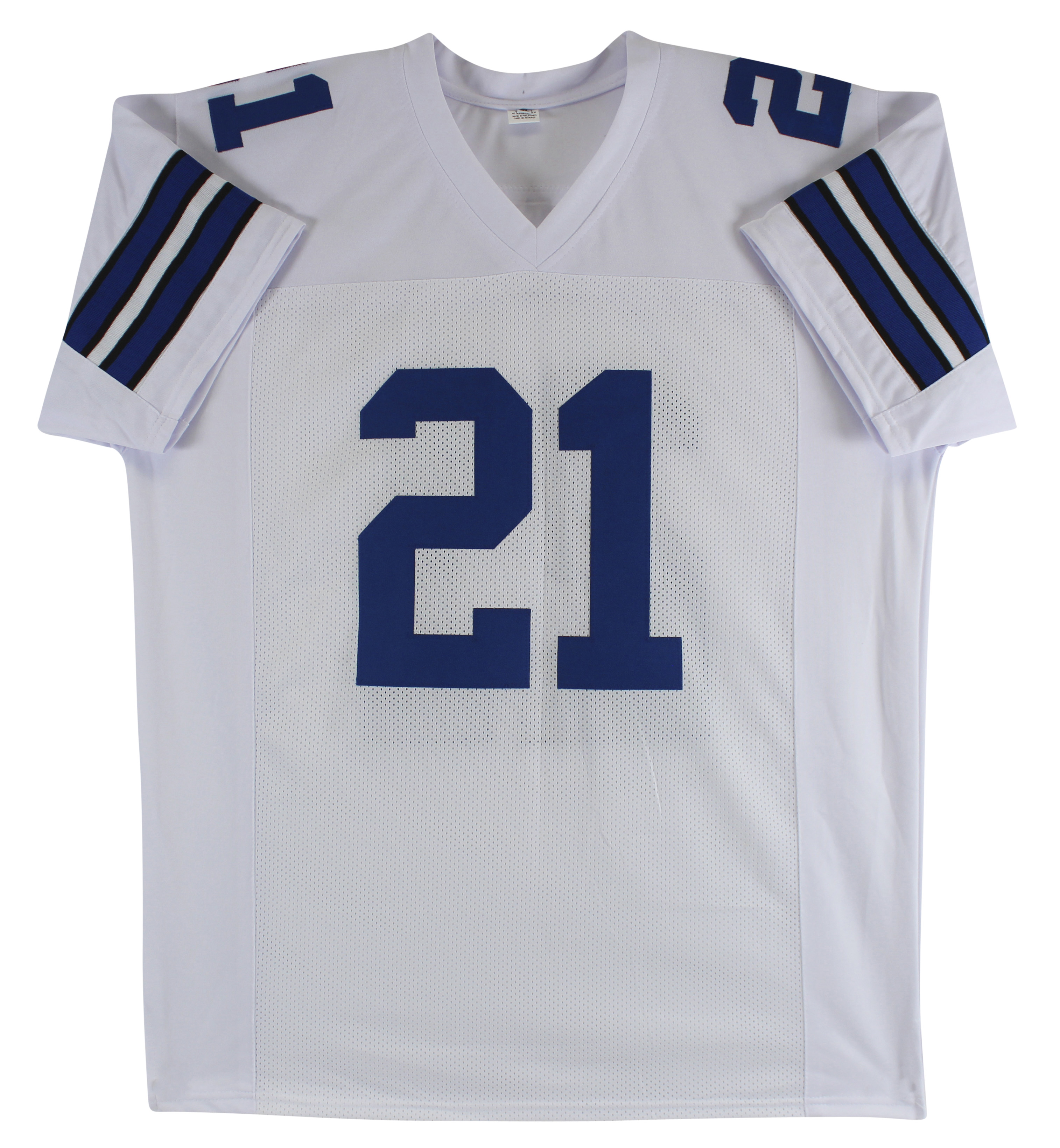 This Autographed White Pro Style Jersey has been Personally Signed by Ezekiel Elliott of the Dallas Cowboys. This item is 100% Authentic to include a Certificate of Authenticity (COA) / hologram by Beckett Authentication Services. This is a BAS Witnessed Protection Program item which means a Beckett Authentication Service representative was present when this item was being signed. We conducted an autograph signing with Ezekiel Elliott where multiples of the same item were signed. While the photographs are representative of this item, the size, placement and strength of the signature may vary. Each item is hand signed, therefore, each autograph is unique. This item can be verified through BAS Witnessed. This is a X-Large sized, non-branded, custom-stitched Jersey.
