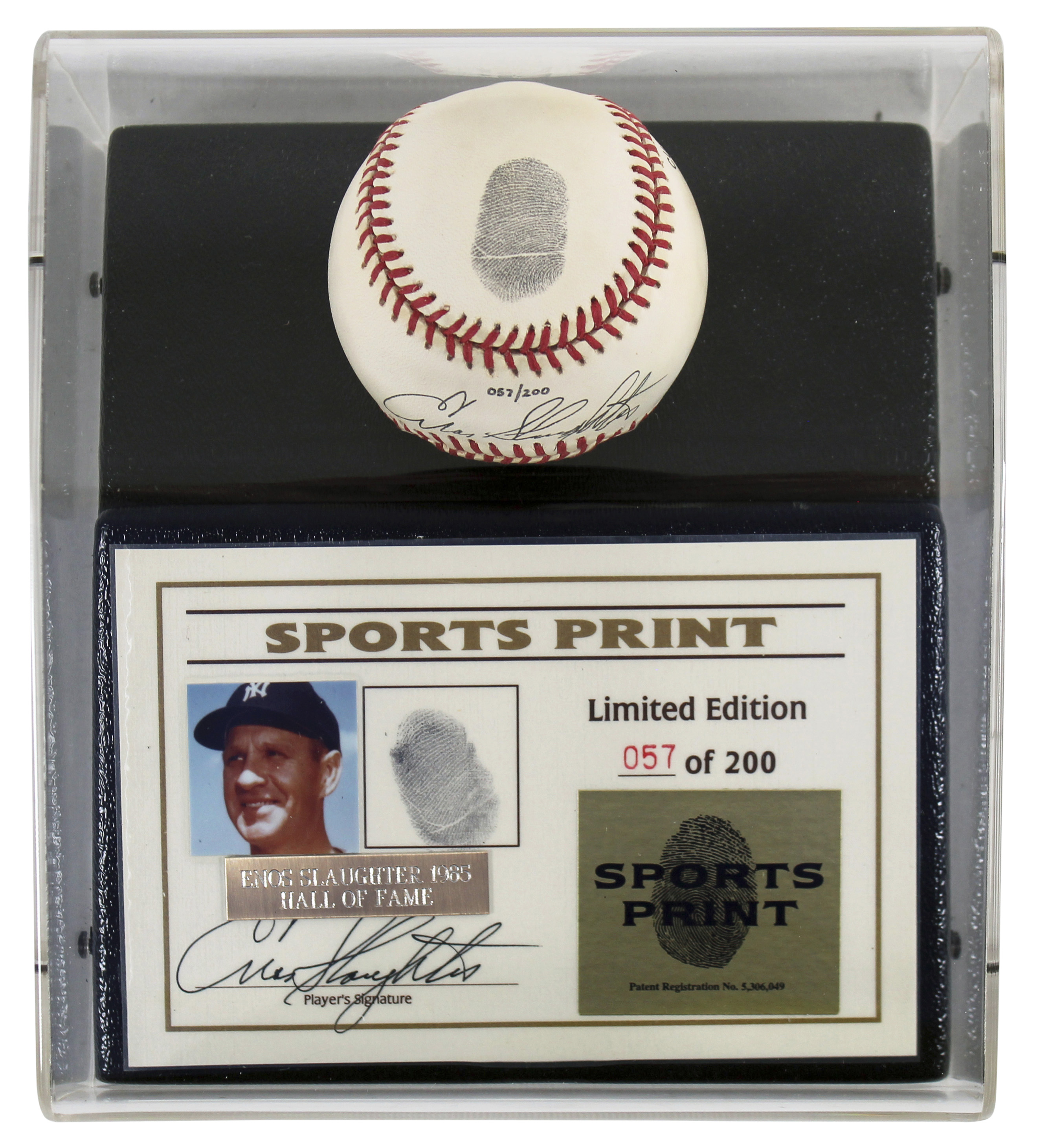 This Autographed Limited Edition Numbered To 200 w/ Display Case Thumbprint Onl Baseball has been Personally Signed by Enos Slaughter of the St. Louis Cardinals. This item is 100% Authentic to include a Certificate of Authenticity (COA) / hologram by Beckett Authentication Services. We have multiples of this same item. While the photographs are representative of this item, the size, placement and strength of the signature may vary. Each item is hand signed, therefore, each autograph is unique. Each ball has a thumbprint of Enos Slaughter , the photo in the case is also signed and has Enos Slaughter signature, though the Beckett COA does not cover both signatures. These vintage balls all have some varying degrees of spotting and toning. We are not able to guarantee the coloring of the ball, and the number of the edition you may receive.