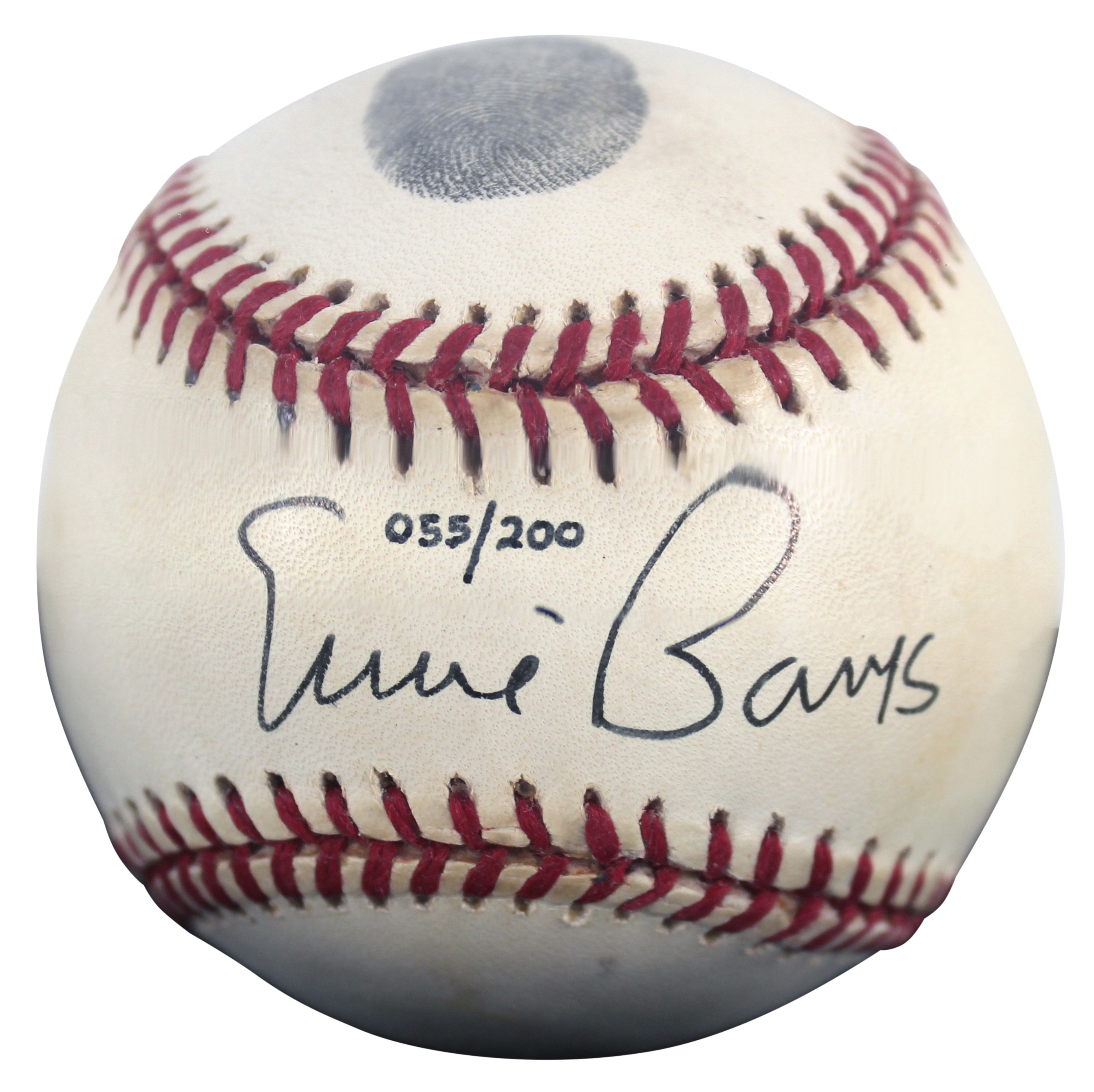 This Autographed Limited Edition Numbered To 200 w/ Display Case Thumbprint Onl Baseball has been Personally Signed by Ernie Banks of the Chicago Cubs. This item is 100% Authentic to include a Certificate of Authenticity (COA) / hologram by Beckett Authentication Services. We have multiples of this same item. While the photographs are representative of this item, the size, placement and strength of the signature may vary. Each item is hand signed, therefore, each autograph is unique. Each ball has a thumbprint of Ernie Banks , the photo in the case is also signed and has Ernie Banks signature, though the Beckett COA does not cover both signatures. These vintage balls all have some varying degrees of spotting and toning. We are not able to guarantee the coloring of the ball, and the number of the edition you may receive.